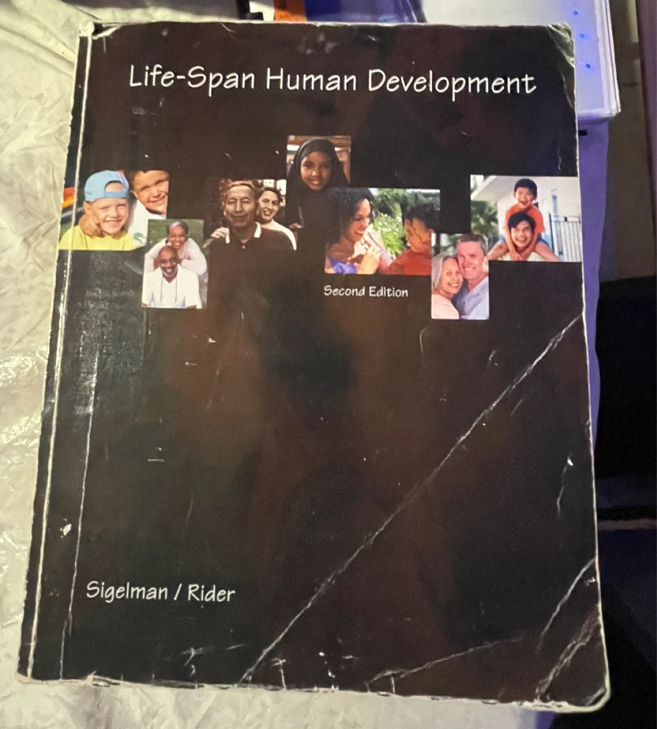 Textbook titled "Life-Span Human Development, Second Edition." Authors are Sigelman and Rider. Covers human development across the lifespan. This is a second edition textbook.