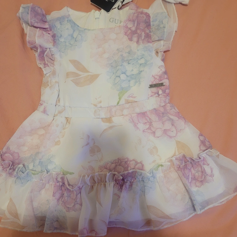 This adorable Guess baby dress features a lovely floral pattern and comes with matching bloomers. It's perfect for your little one! The dress is in great condition and ready for a new home.