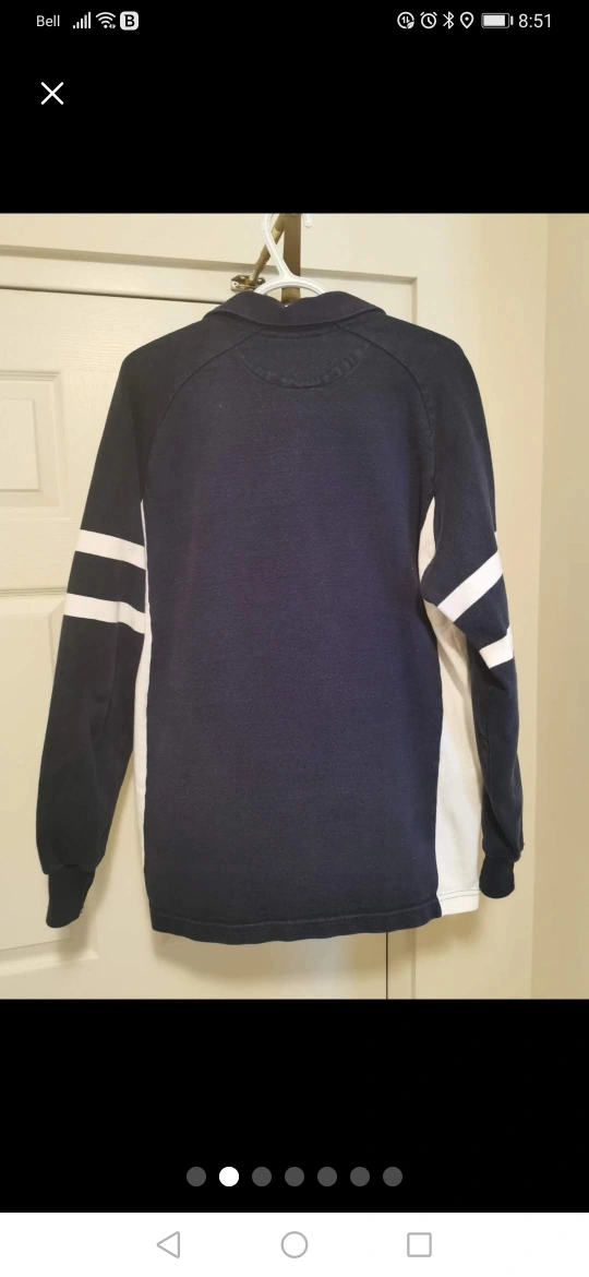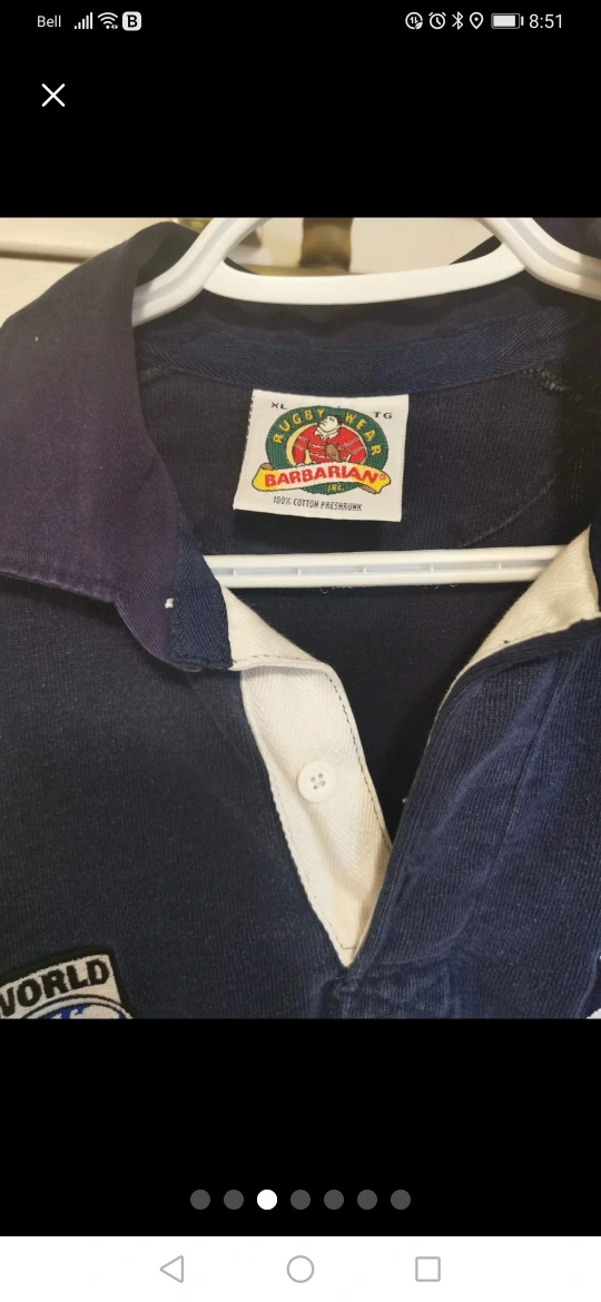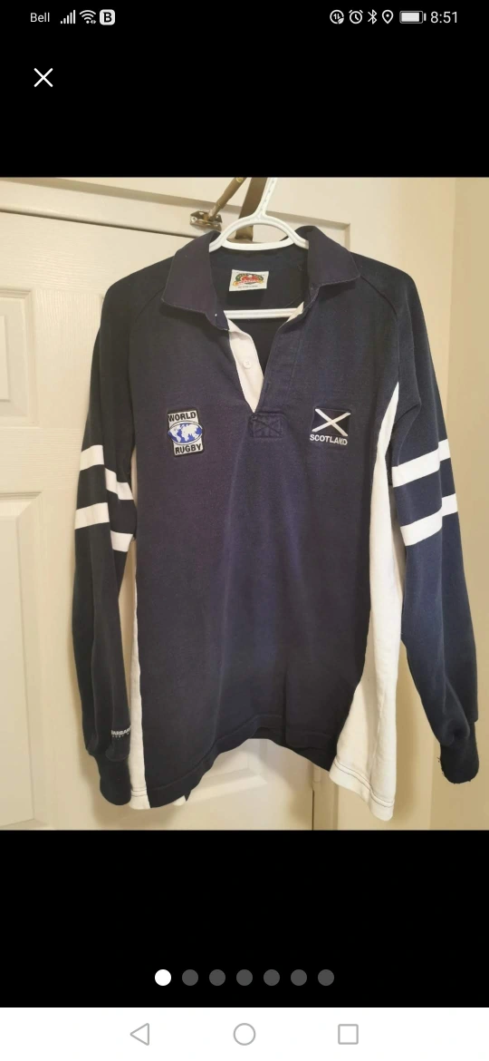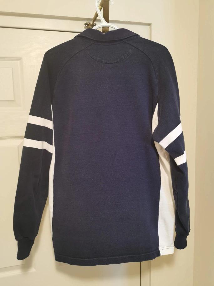 I'm selling a Barbarian Rugby Wear long sleeve shirt in size XL. It's a navy blue colour with white stripes on the sleeves. Features a World Rugby patch and Scotland Flag on the chest. Made of 100% cotton, it's pre-shrunk for a great fit!