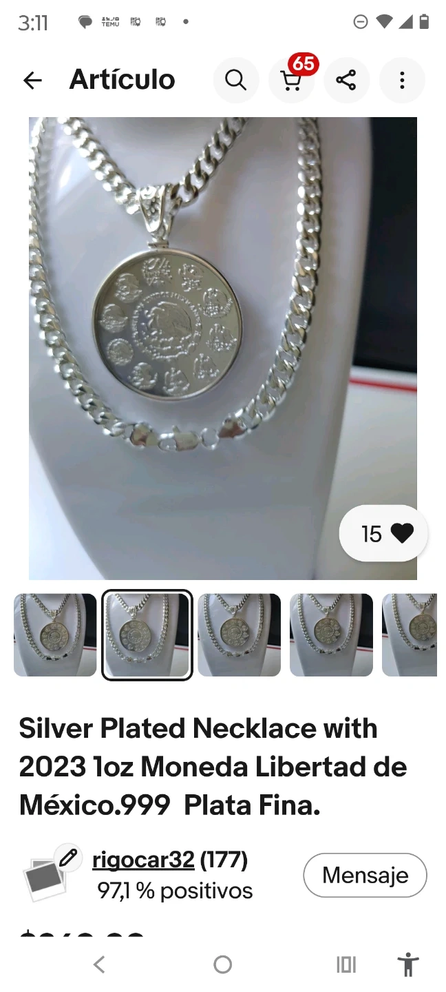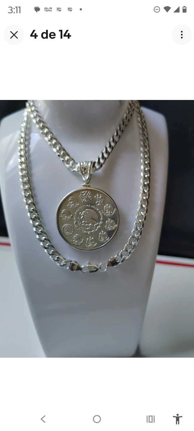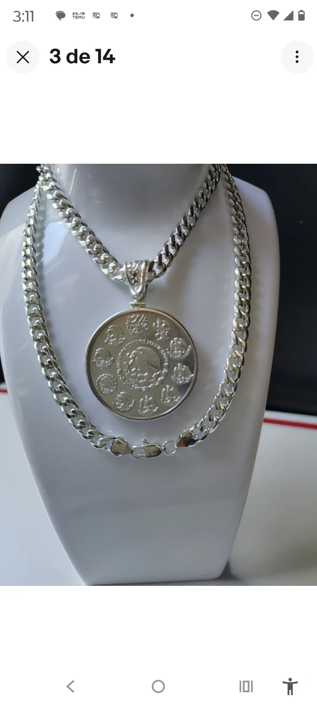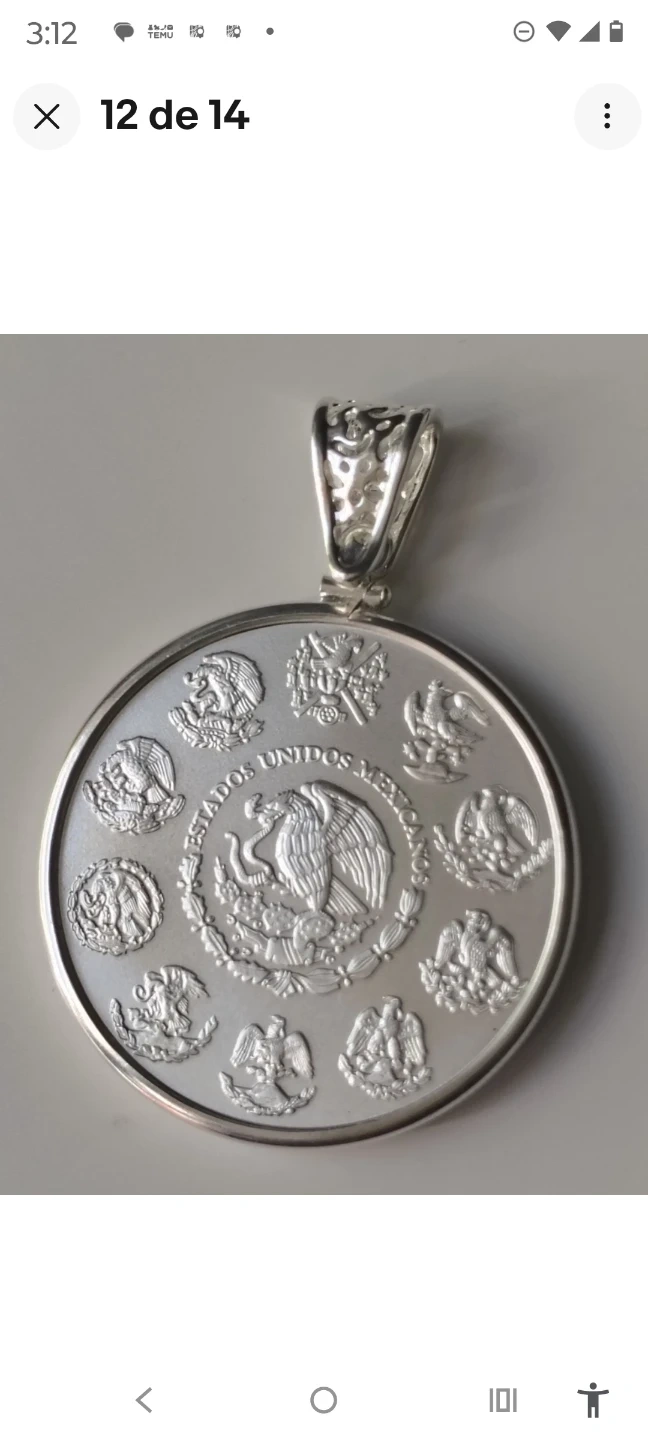 This necklace features a silver-plated curb chain and a pendant designed to look like a 1oz Libertad de México coin. The coin is plated in .999 fine silver. It's a statement piece that combines classic jewelry design with coin appeal. It's great for adding a touch of shine to any outfit!