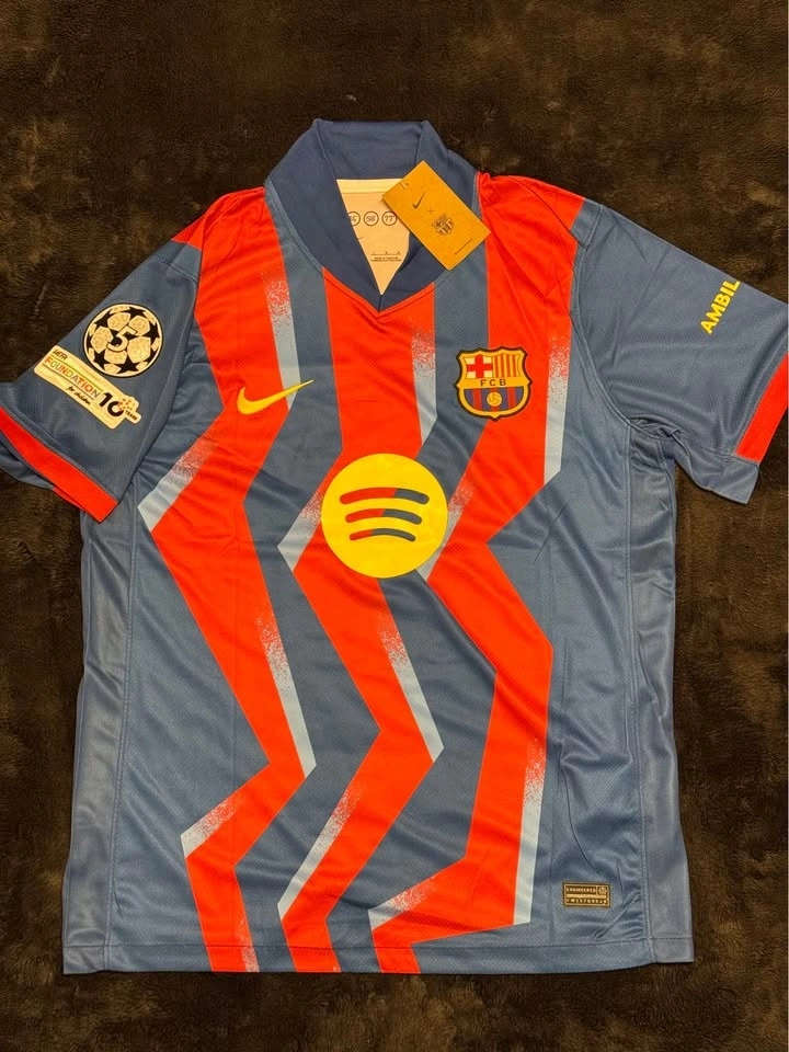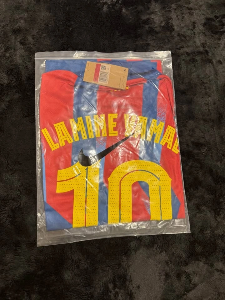 Brand new FC Barcelona jersey featuring Lamine Yamal #10. Tags still attached, never worn. Size: Large. Short sleeve. Excellent condition. Clean stitching and sharp name & number. Patches and details shown in photos.