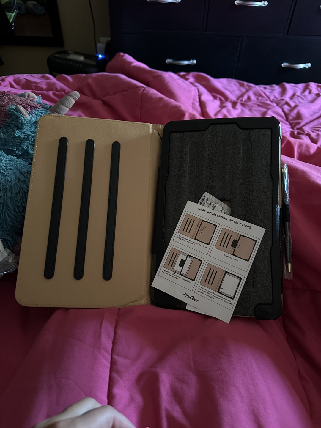Brand new tablet case. Fits Samsung Galaxy Tab A7 10.4 inch tablet. Beige interior. Includes stylus holder. Made in China.