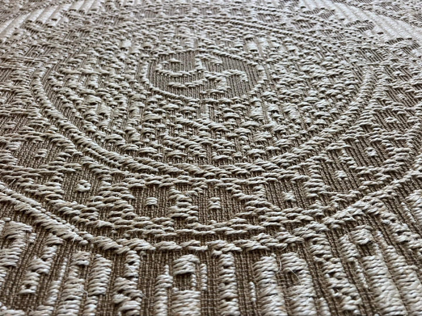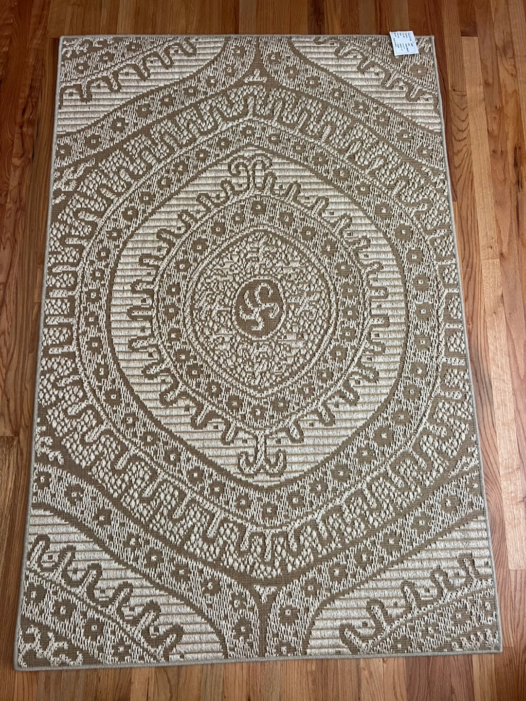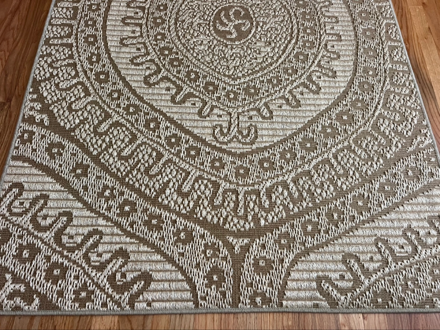 73Indoor/outdoor rug. Neutral colors. Intricate pattern. Made in India. Collection WMA.