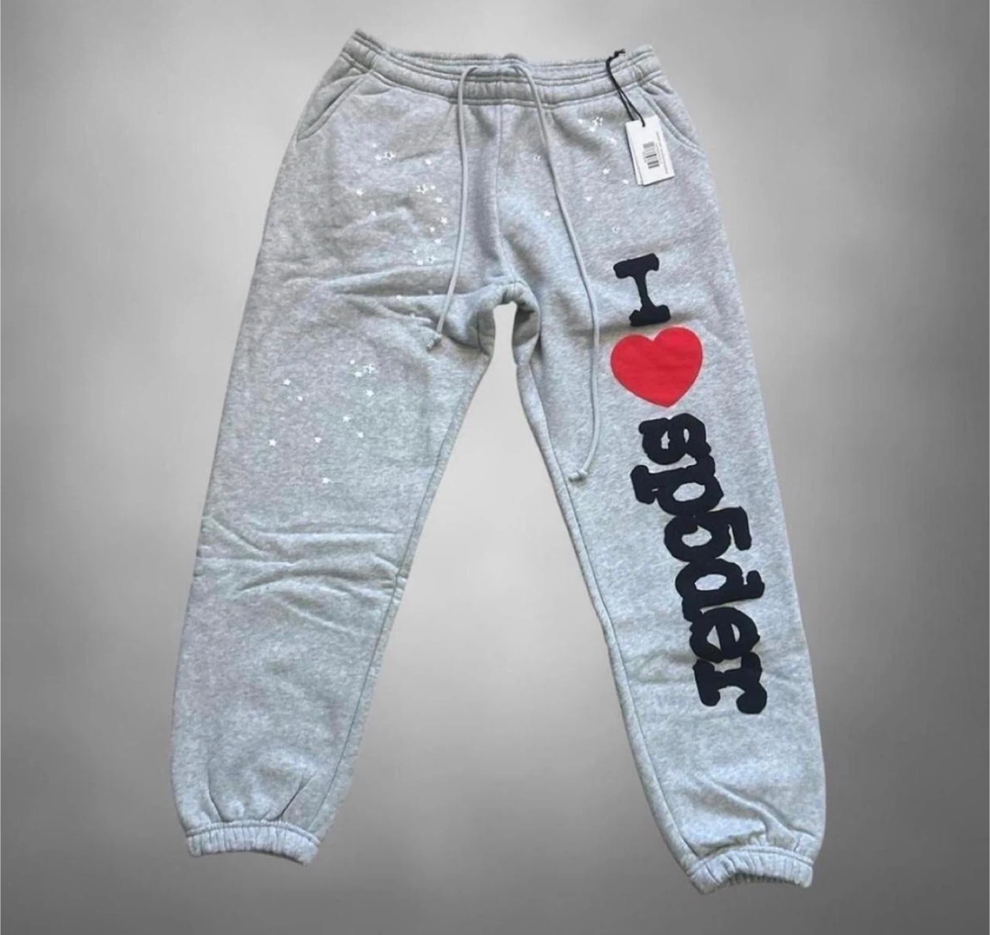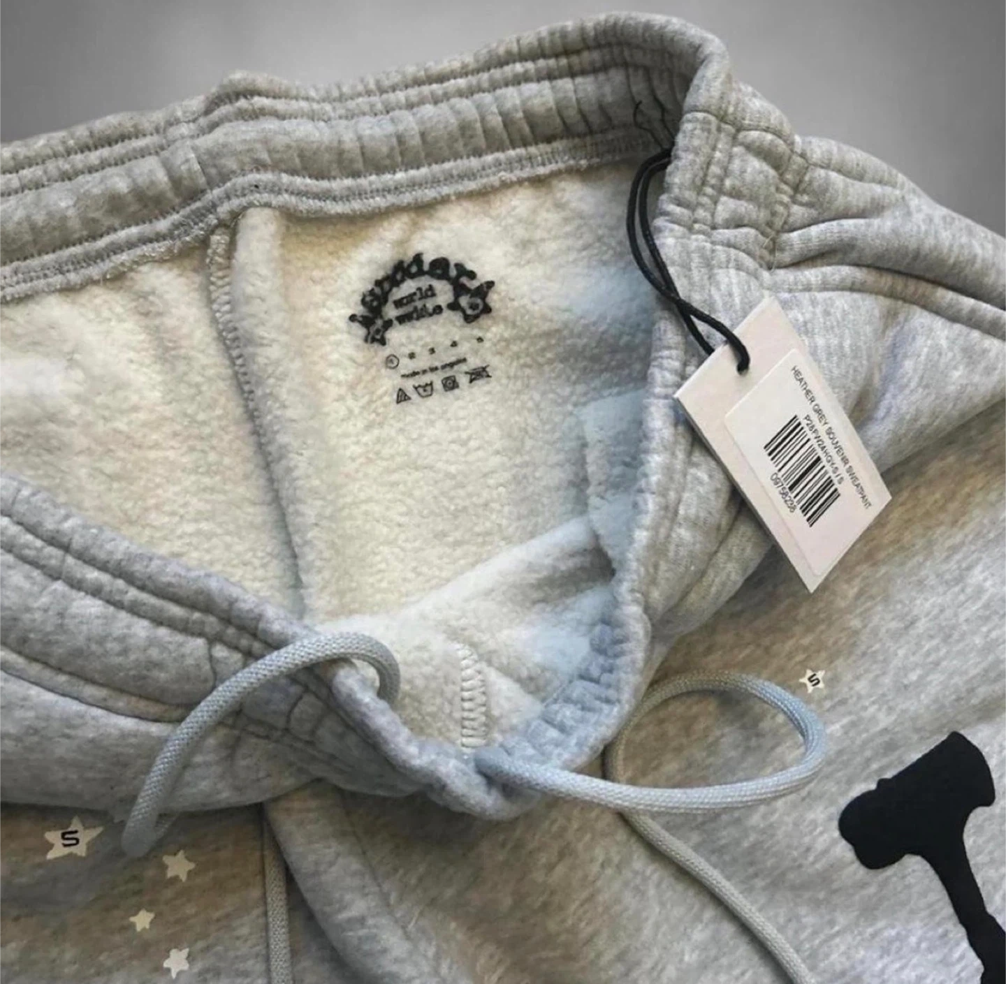 Sp5der Souvenir sweatpants in heather grey featuring bold graphics, soft premium fabric, and standout streetwear comfort for everyday wear.