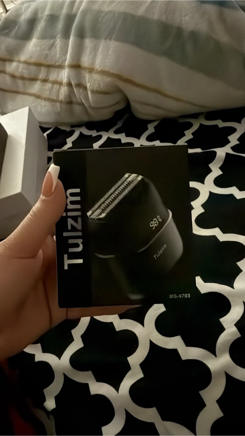 This is a Tulzhim MS-9703 electric shaver. It's black and shows 98% battery life. The shaver comes in its original box.