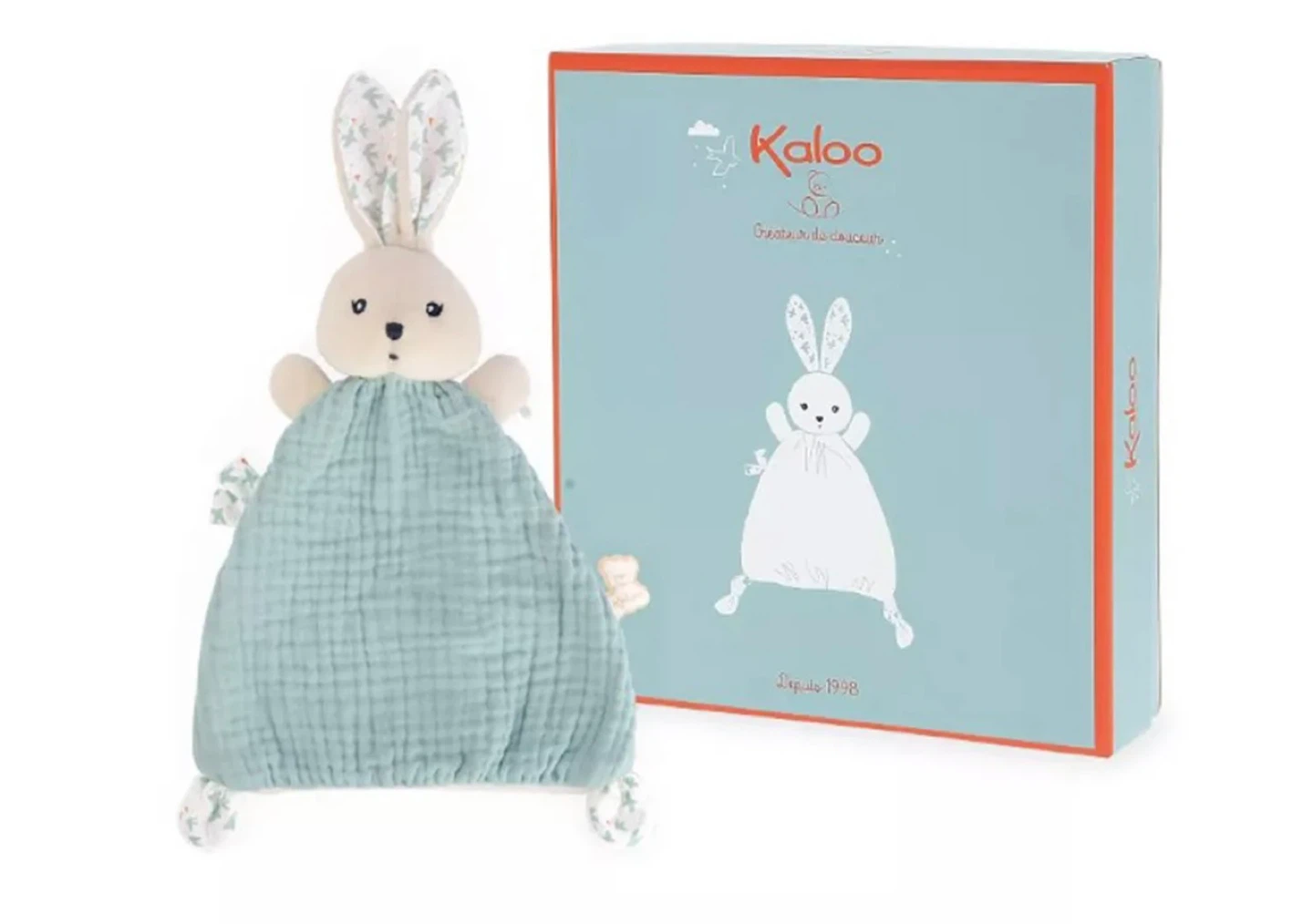This Kaloo bunny doudou is a soft and comforting security blanket for babies. It's made of gentle, lightweight muslin fabric. Comes in its original box.