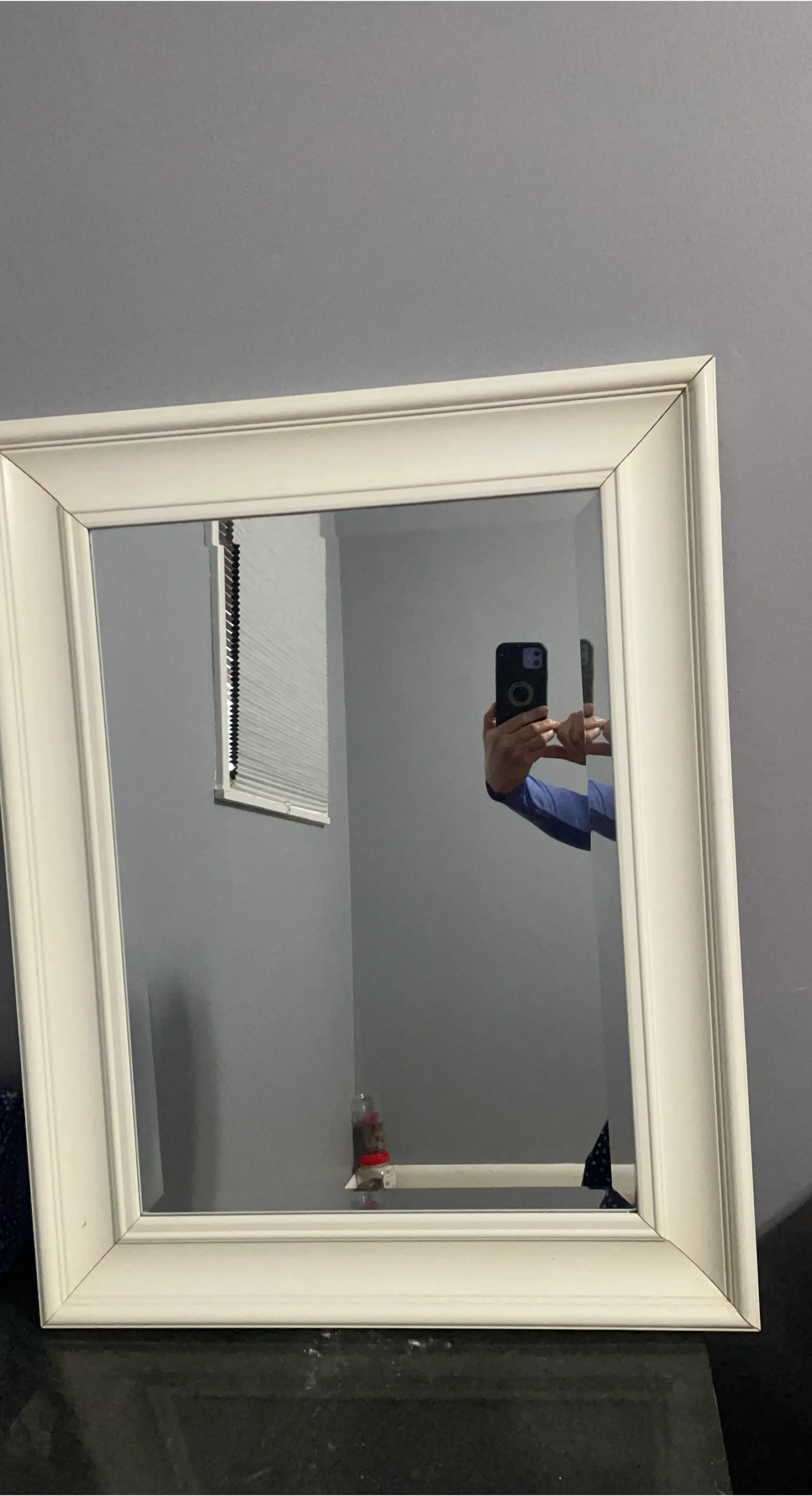 This decorative mirror features a cream-colored frame with a subtle beveled edge. It's a great addition for entryways or living spaces. The frame is made of wood.