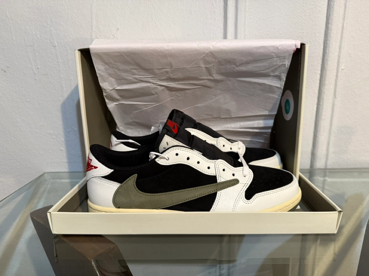 Authentic pair of Jordan 1 Low Travis Scott Olive .