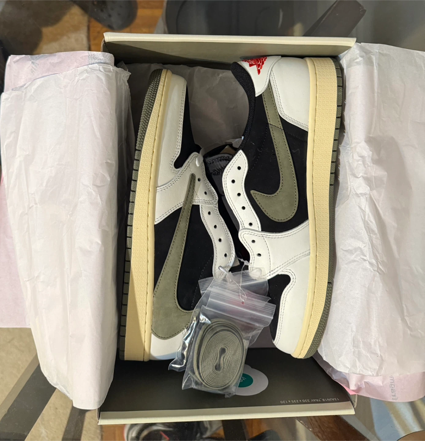 Authentic pair of Jordan 1 Low Travis Scott Olive .