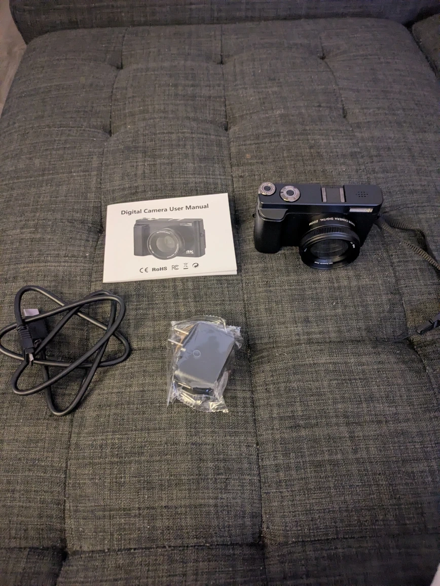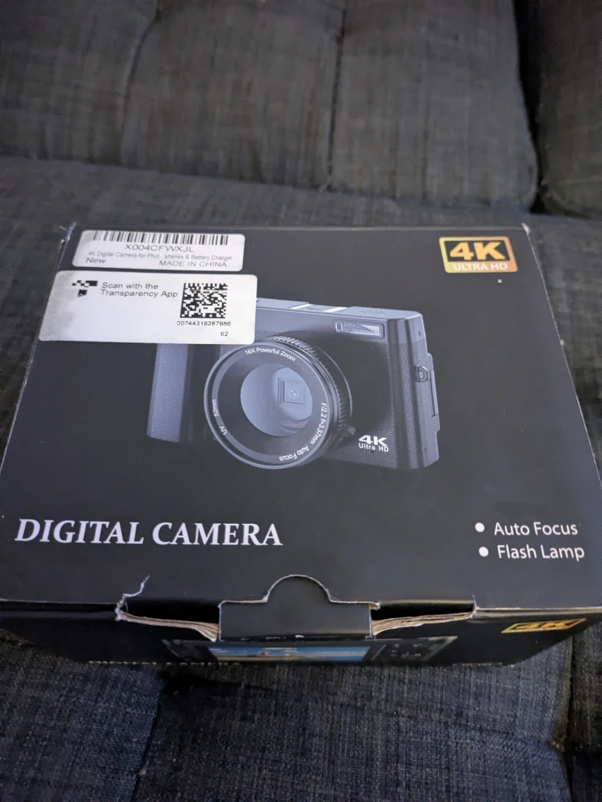 Selling a digital camera that shoots in 4K! It has a CMOS camera with digital zoom, auto focus, and a flash lamp. Comes with the original box