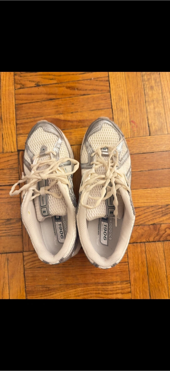 Selling a pair of New Balance 1906R sneakers. They are in good condition and ready for a new owner! They are white and silver.