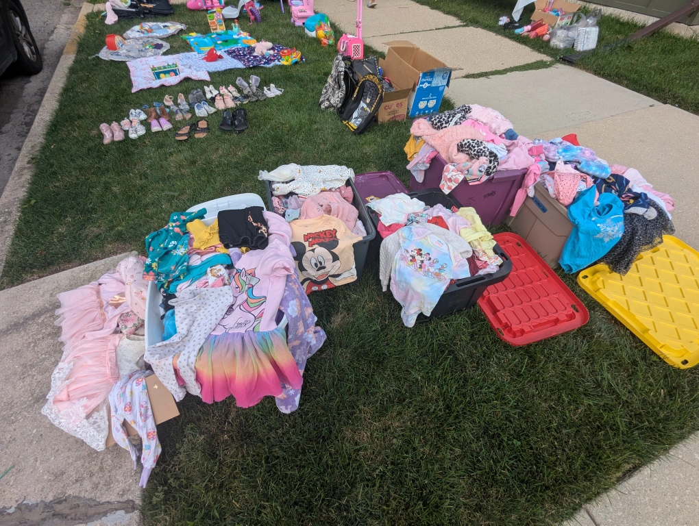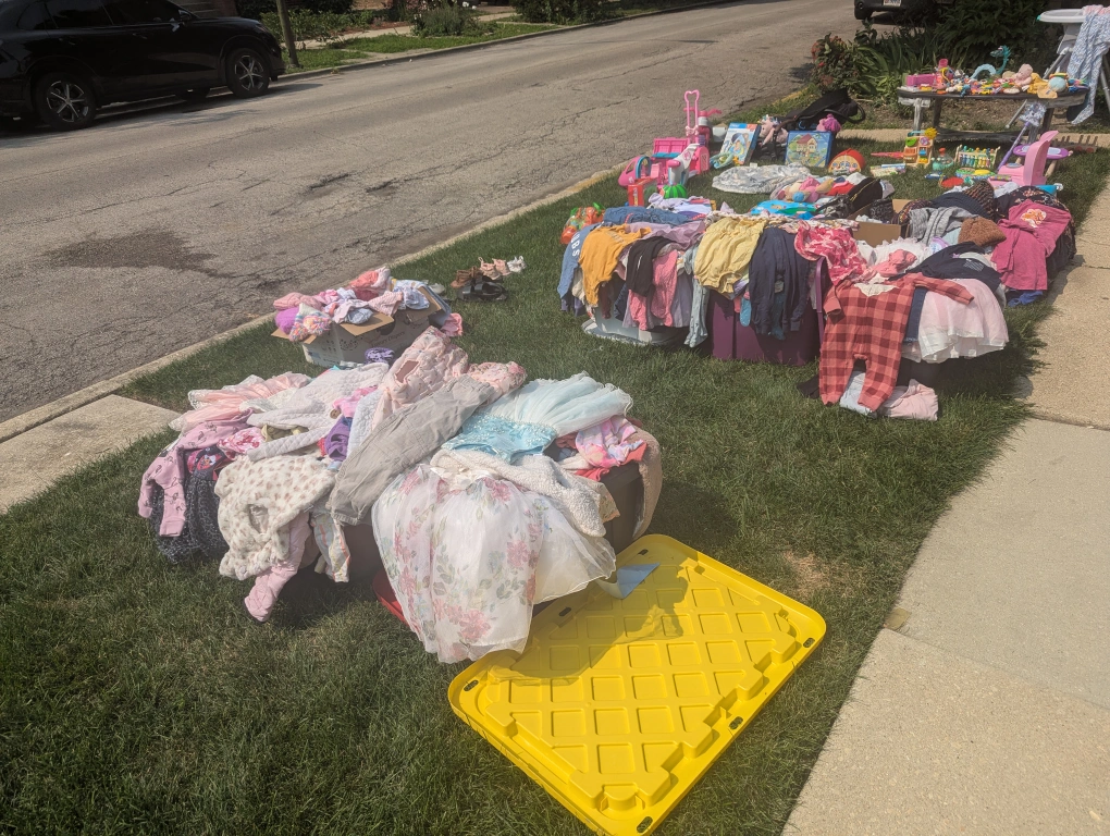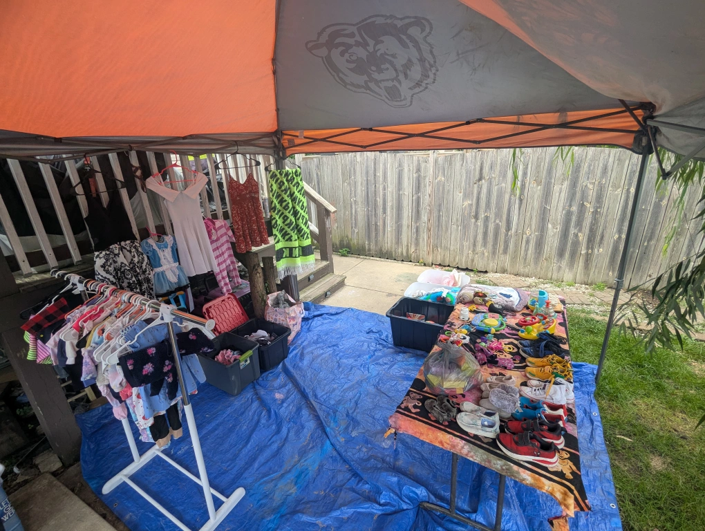 Women's and men's clothes *name brands* Women's small/medium/large clothes, dresses, pants, shirts and hoodies *name brands* Men's clothes small/medium/large hoodies, pants, shirts Shoes Baby/toddler toys and shoes Boys shoes 9/10/11 *name brands* Irving Park and Central Portage park 60641 Last pop up $5 fill a bag, I have unlimited bags (normal size grocery bags) Free boxes include toys, all size clothes men's and women's Ropa para mujer y hombre *marcas reconocidas* Ropa, vestidos, pantalones, camisas y sudaderas para mujer en tallas pequeñas, medianas y grandes *marcas reconocidas* Ropa para hombre en tallas pequeñas, medianas y grandes: sudaderas, pantalones y camisas Zapatos Juguetes y zapatos para bebés y niños pequeños Zapatos para niño (9/10/11) *marcas reconocidas* Irving Park y Central Portage Park 60641 Última parada Llenar una bolsa por $5. Tengo bolsas ilimitadas (bolsas de supermercado de tamaño normal). Las cajas gratuitas incluyen juguetes y ropa de todas las tallas para hombre y mujer.