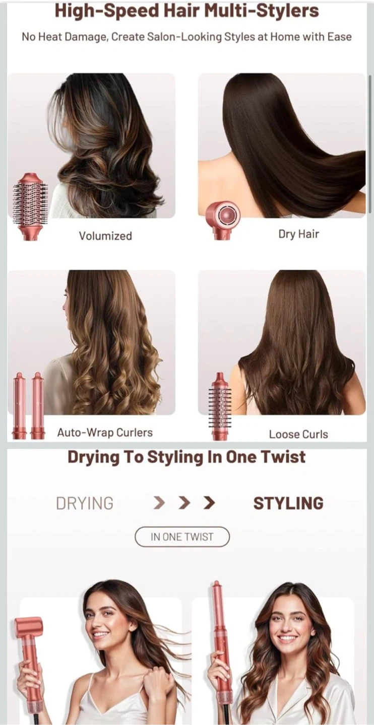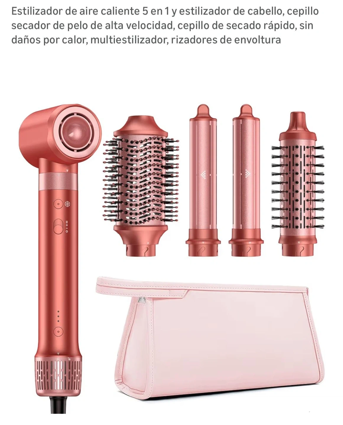 60Get salon-quality styles at home with this 5-in-1 hot air hair styler! This set includes everything you need for drying, volumizing, and curling your hair. It features enhanced Coanda airflow and auto-wrap curlers for easy styling with no heat damage. Add volume while drying when your hair is 70% dry