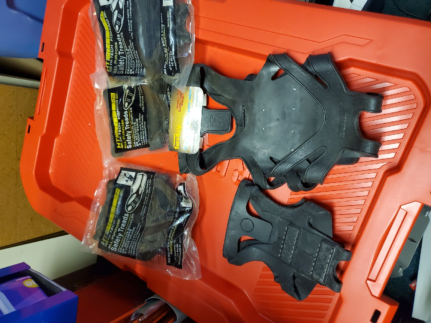 60Selling 5 sets All Purpose Safety Treads! These are one size fits all boot and shoe sizes. Great for ice fishing, fly fishing, construction, and marine activities. They provide sure grip traction on icy and slippery surfaces. Get ready for winter!