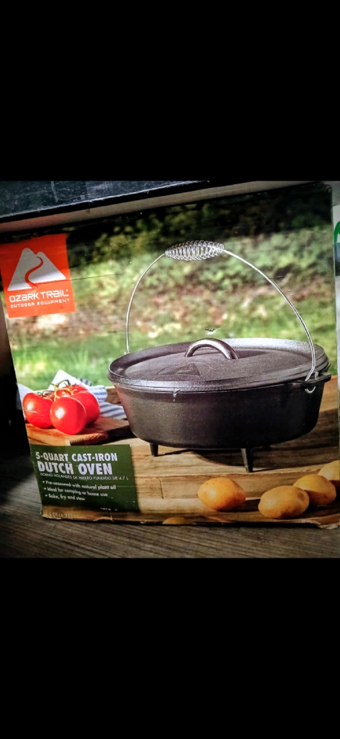 5-quart cast-iron dutch oven! It's pre-seasoned with natural plant oil and is ideal for camping or home use. Perfect for baking, frying, and stewing