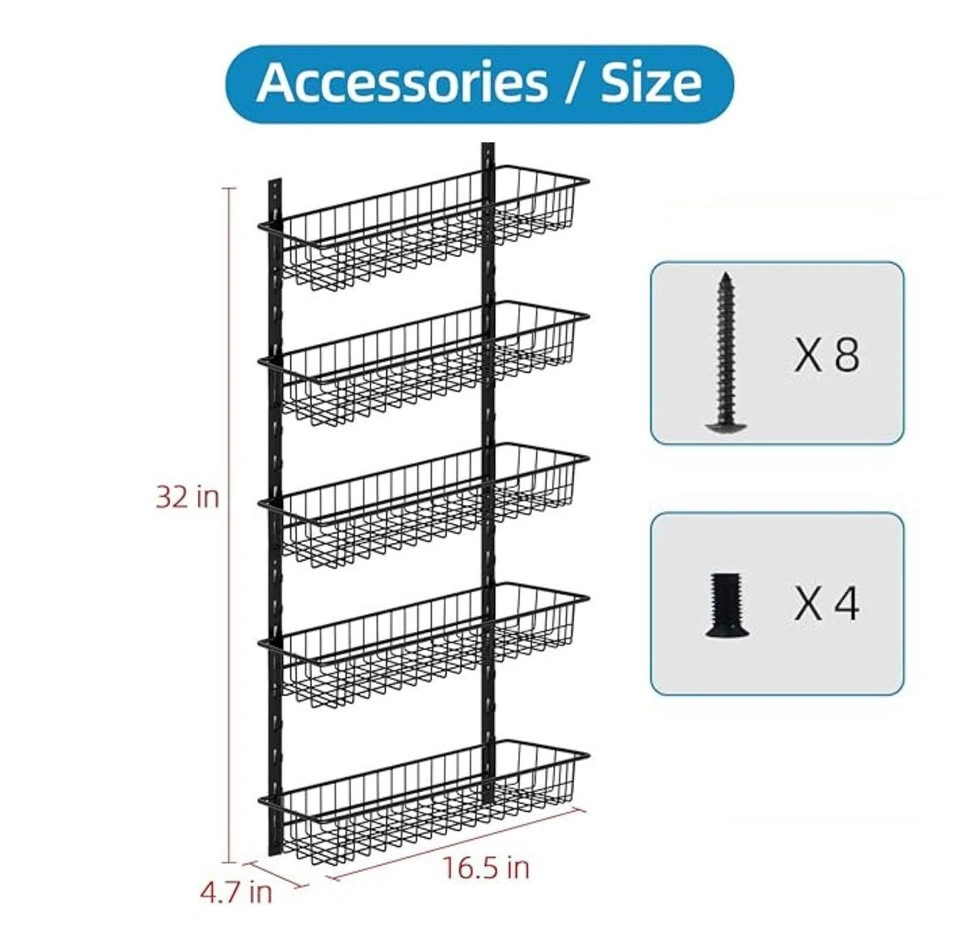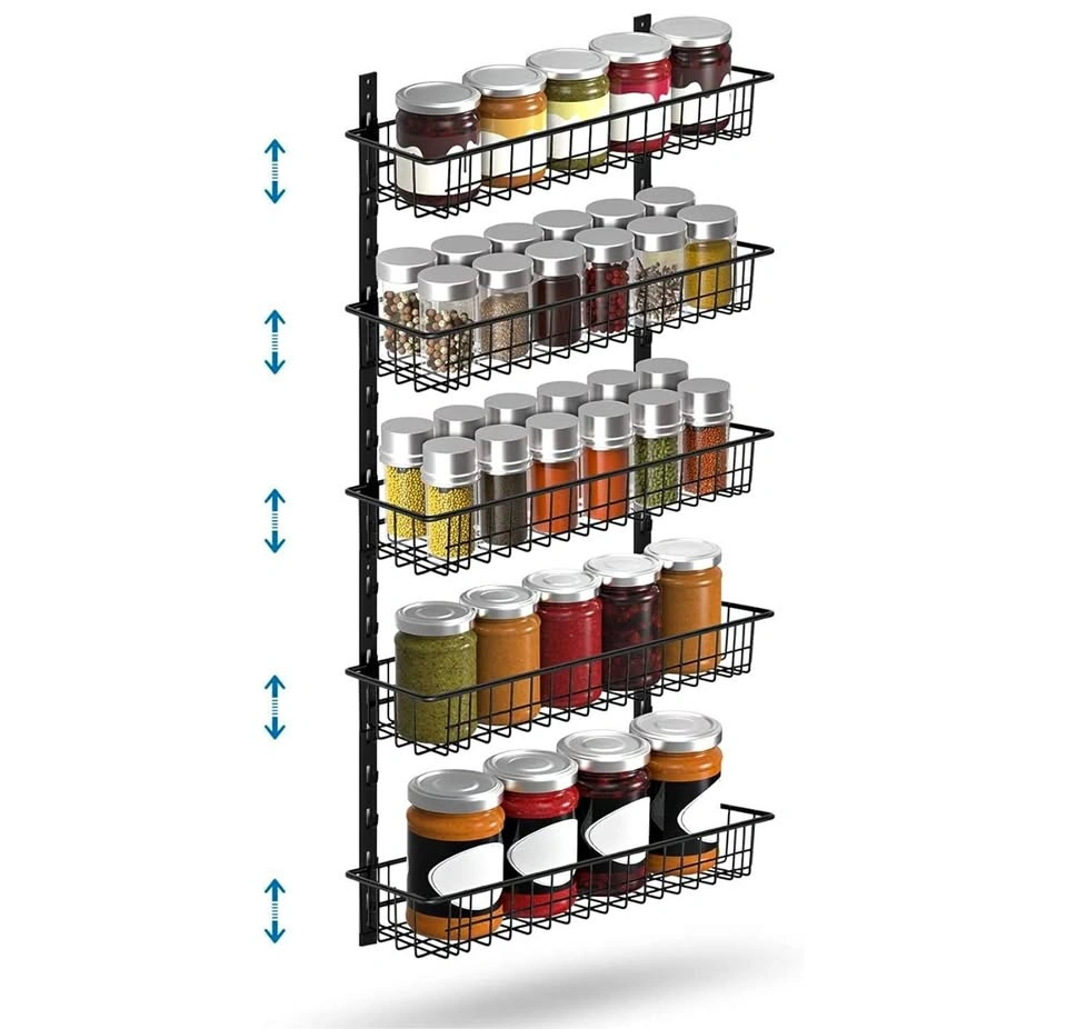 5-Tier Metal Spice Rack Organizer – Adjustable Wall Mount