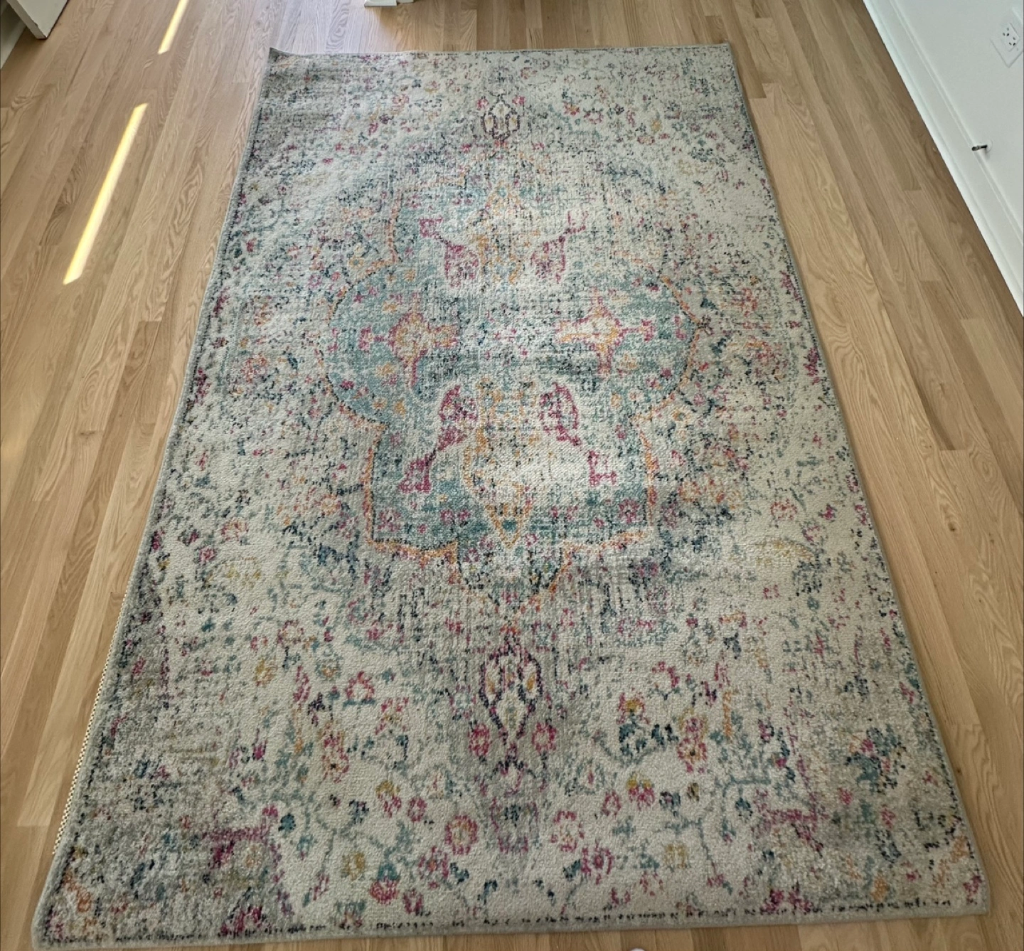 Like New 5” x 7.5” Medallion Rug. Perfect for an office, nursery, living room, or bedroom. Introduce a touch of bohemian elegance to your living space with the Bayuda Mottled Medallion rug. This stunning rug features a captivating medallion pattern in a mottled blue color palette, adding a pop of color and style to any room. Crafted from premium materials, this rug is designed to be both durable and soft underfoot. Comes with rug pad gripper. No stains, rips, or pet hair.