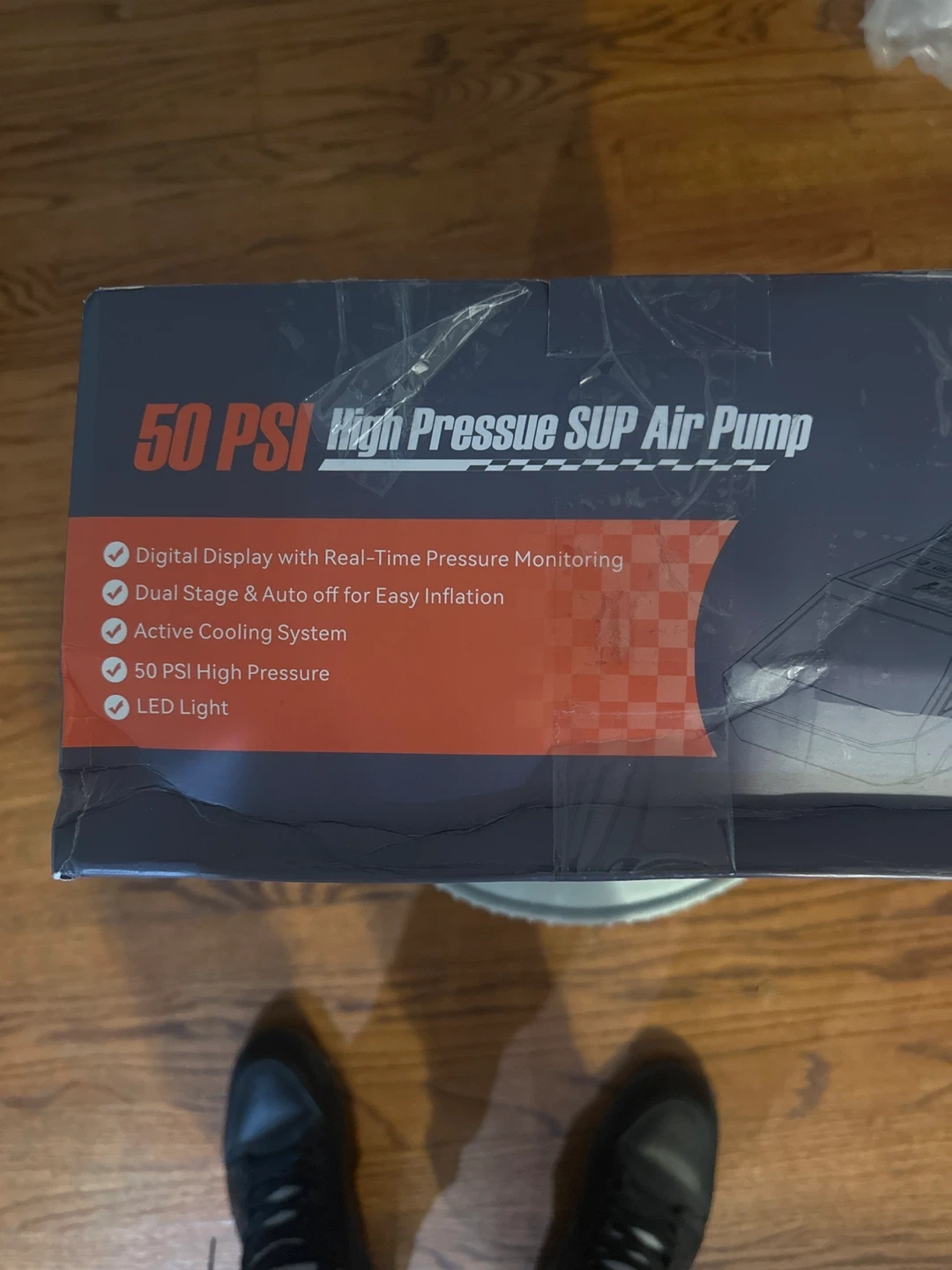 Selling a brand new 50 PSI High Pressure SUP Air Pump! It comes in its original box and features: - Digital display with real-time pressure monitoring - Dual stage & auto off for easy inflation - Active cooling system - 50 PSI high pressure - LED light