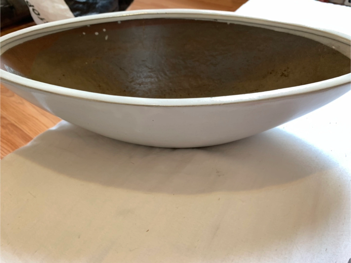 Unique oval-shaped ceramic planter. White exterior, brown interior. Great for indoor plants or home decor.