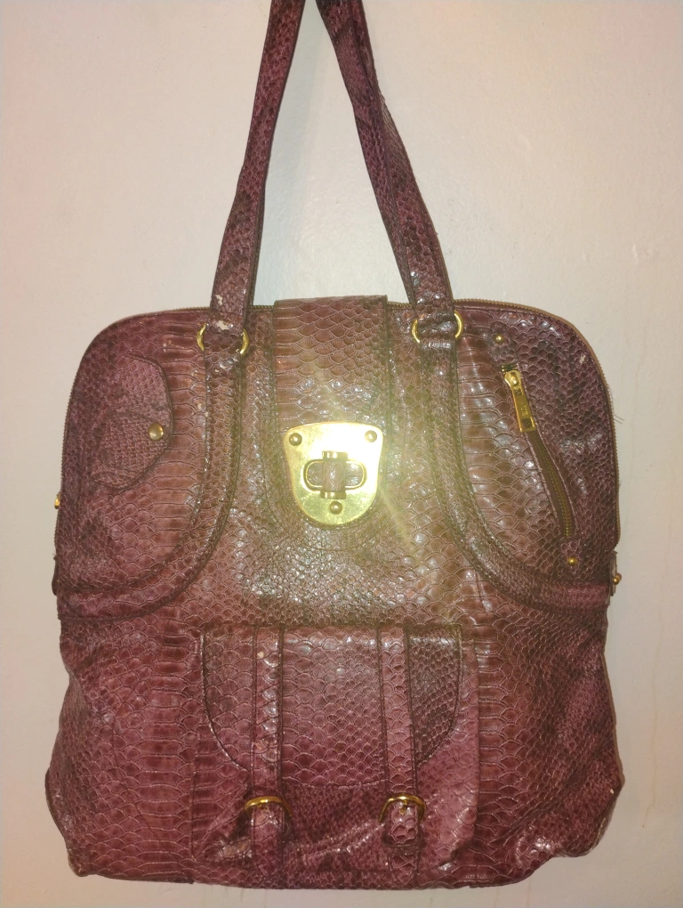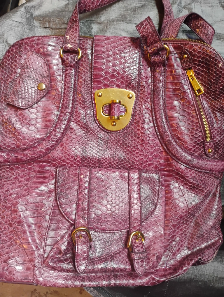 75Urban Expressions Large tote bag. Purple snakeskin Gold hardware. Two top handles. Multiple compartments. Zipper closure.