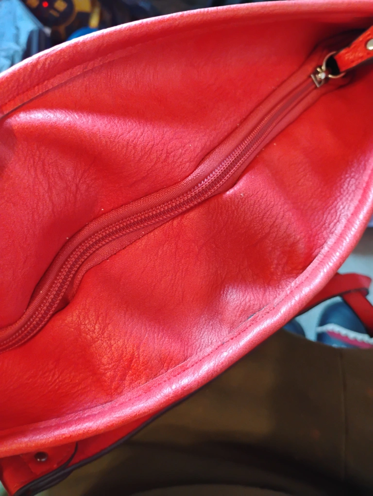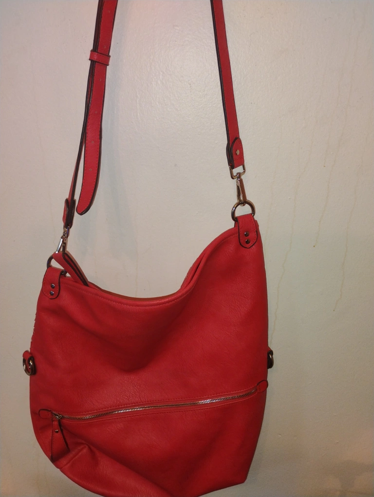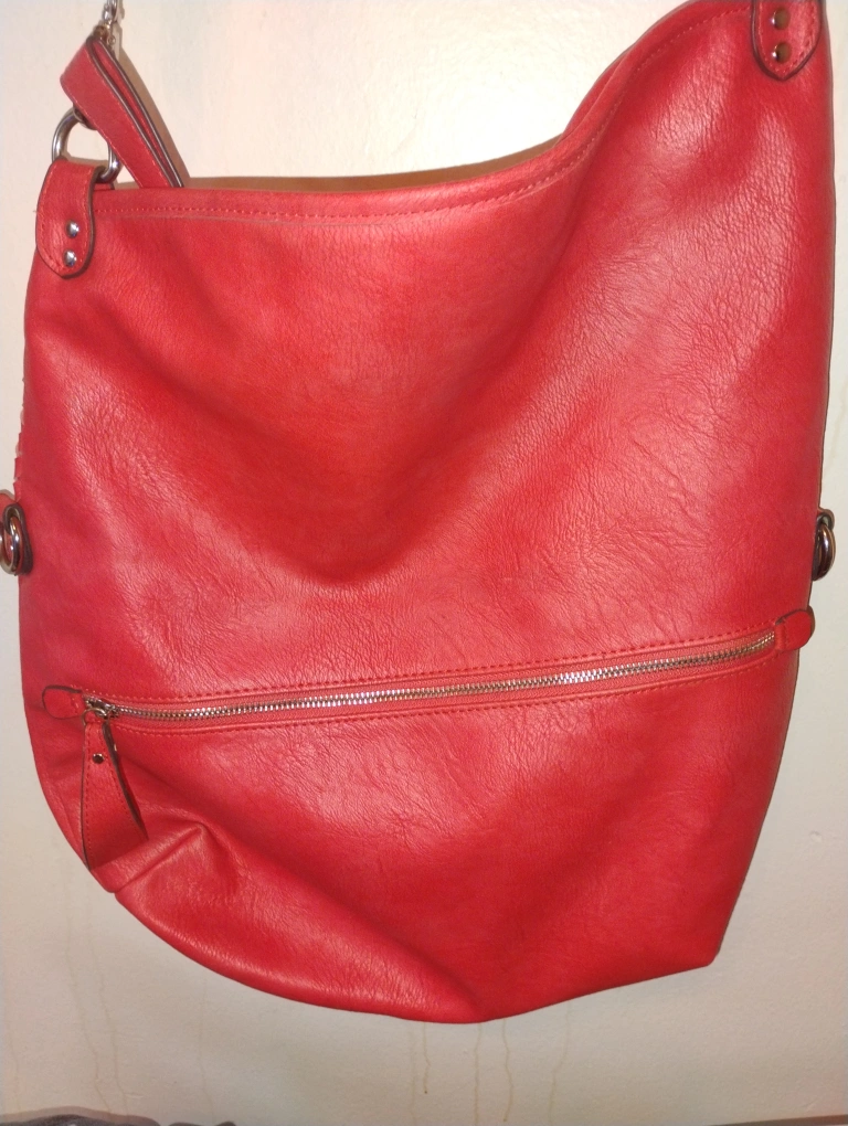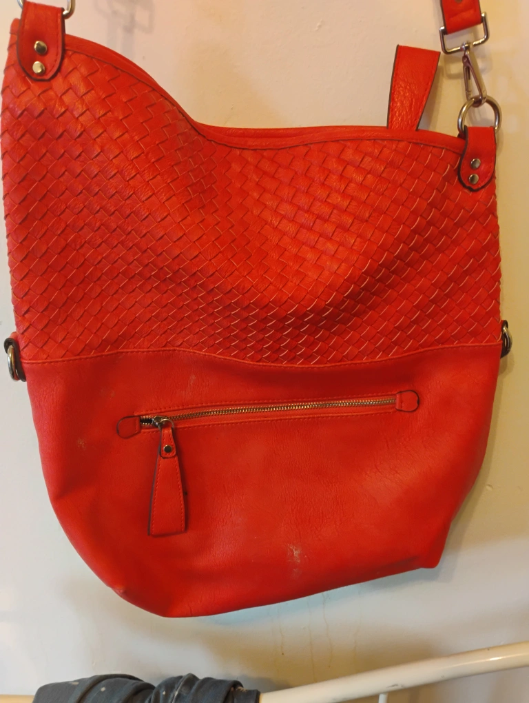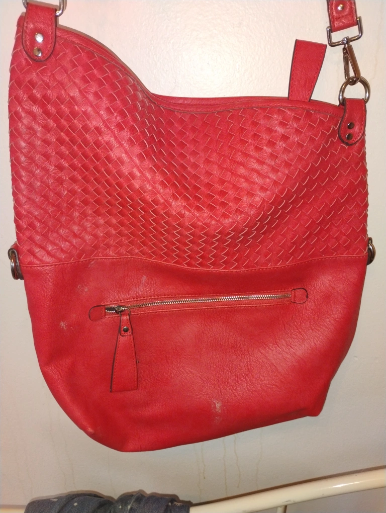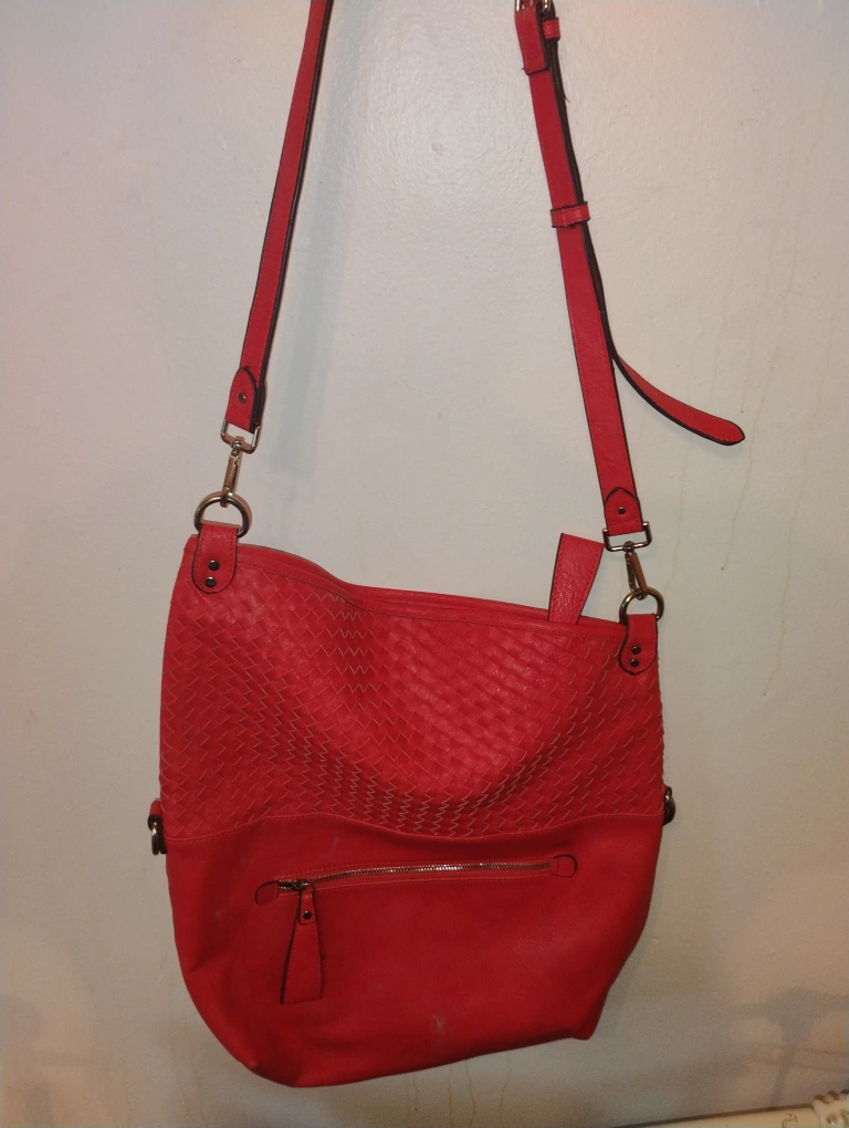 Chinese Laundry Red crossbody bag. Features woven detailing and a zippered pocket. Adjustable strap. Great everyday bag.