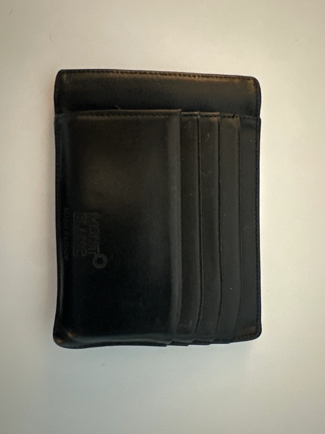 Buy & SellMontblanc Black Leather Card Holder WalletMontblanc Black Leather Card Holder Wallet$50Genuine Montblanc leather card holder. Sleek design. Multiple card slots. Comes in original box.ConditionGoodBrandMontblancWHERE TO MEETCheck LocationView MapSELLERverifiedGregDowntown Brooklyn1064 reviews1 chats·0 favorites·20 views