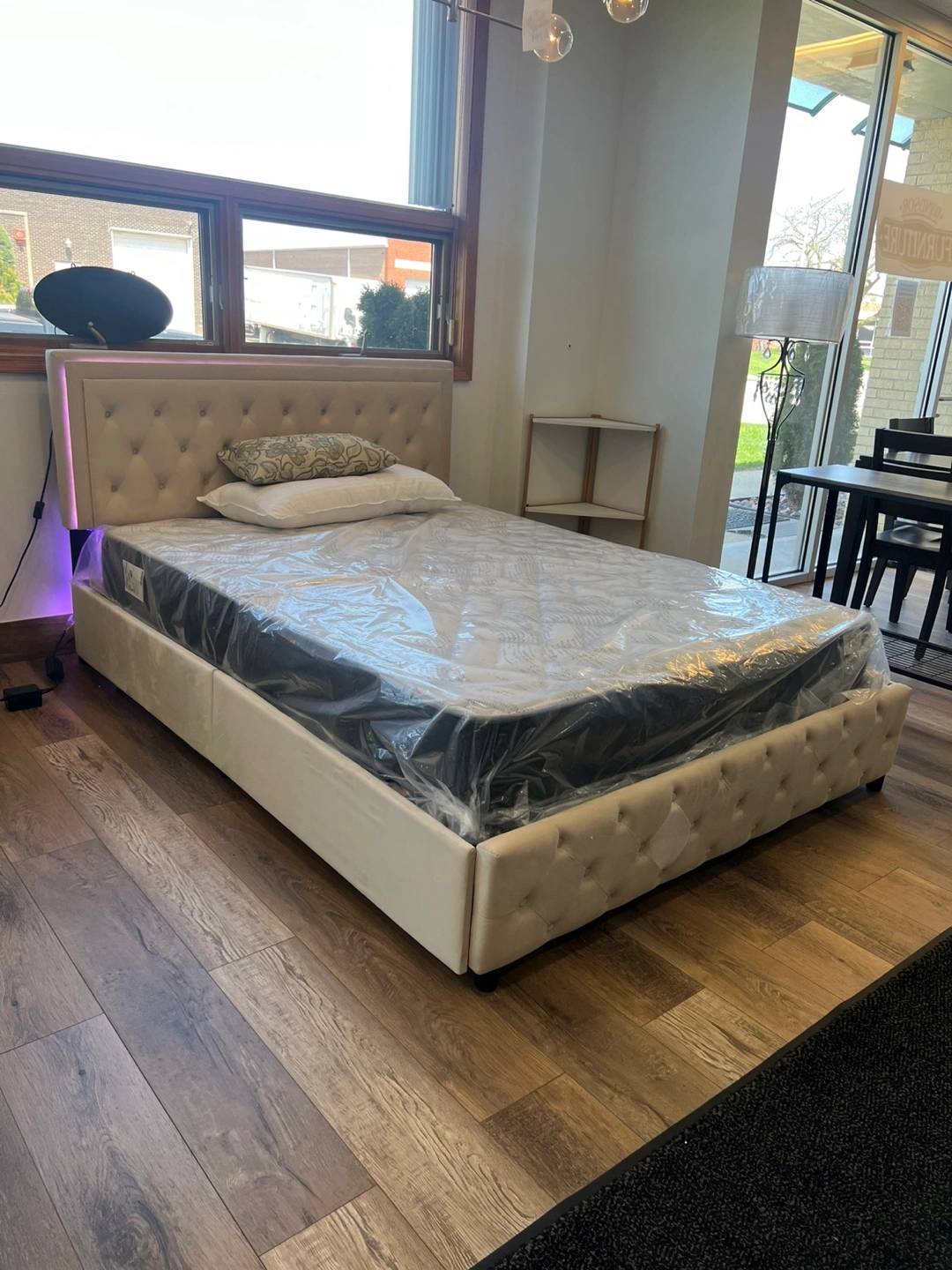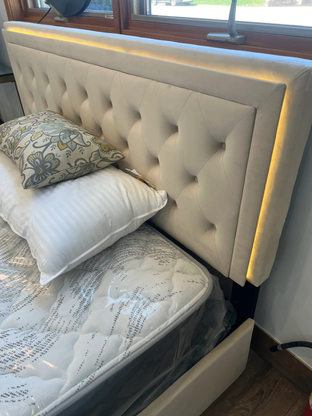 Baxton Studio Roxy Ottoman - Off White Boucle & Walnut