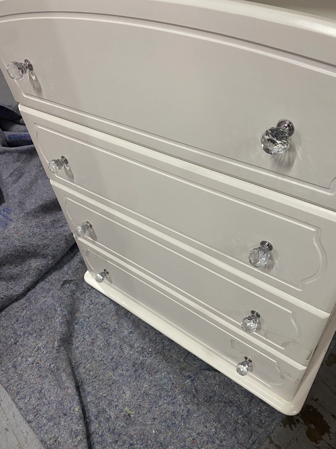 π§There is clear packing tape side of dresser due to moving unit to keep drawers closed.