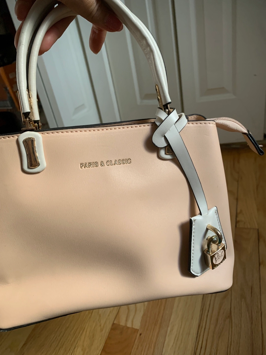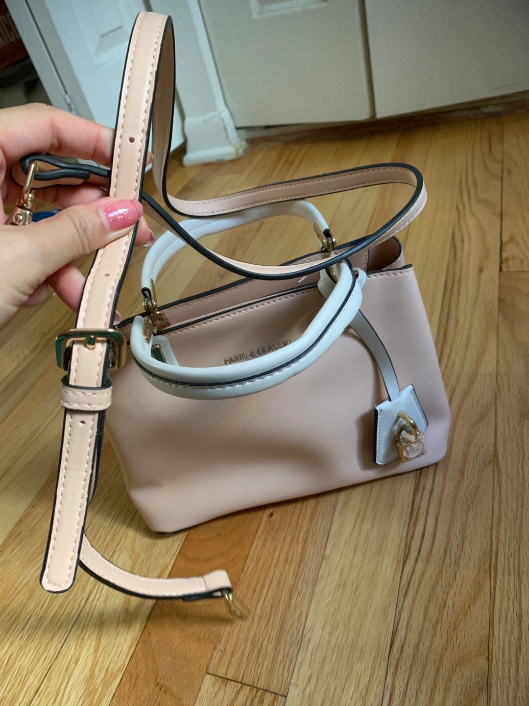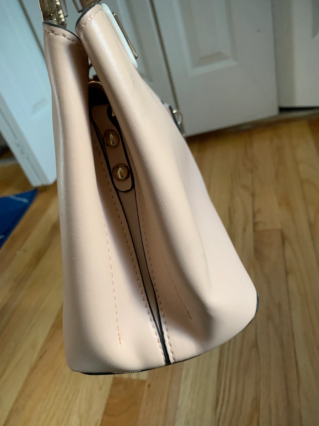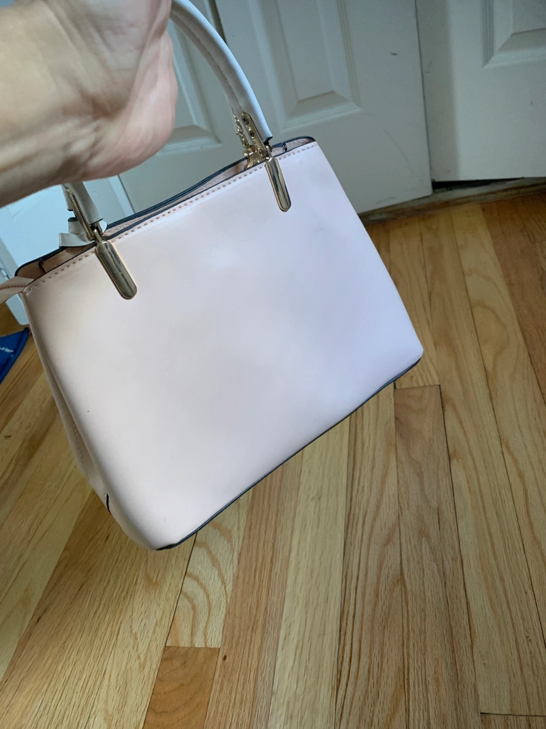 Adorable blush pink handbag. Features a detachable strap and gold hardware. Small, perfect everyday bag.