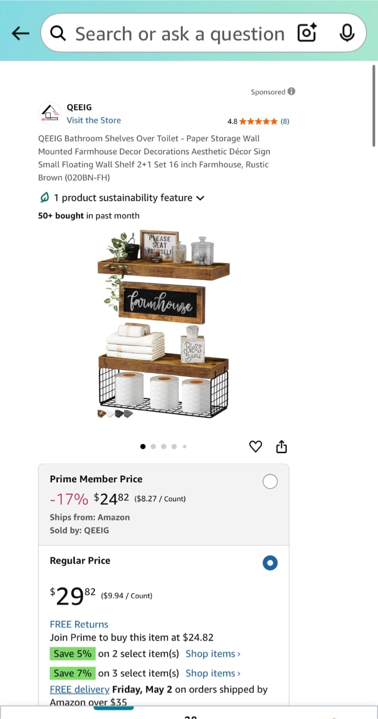 QEEIG Bathroom Shelves Over Toilet - Paper Storage Wall - New