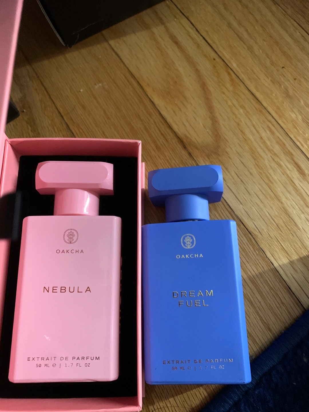 Two 50ml extrait de parfum bottles. Nebula in pink box, Dream Fuel in blue box. Unopened and unused.