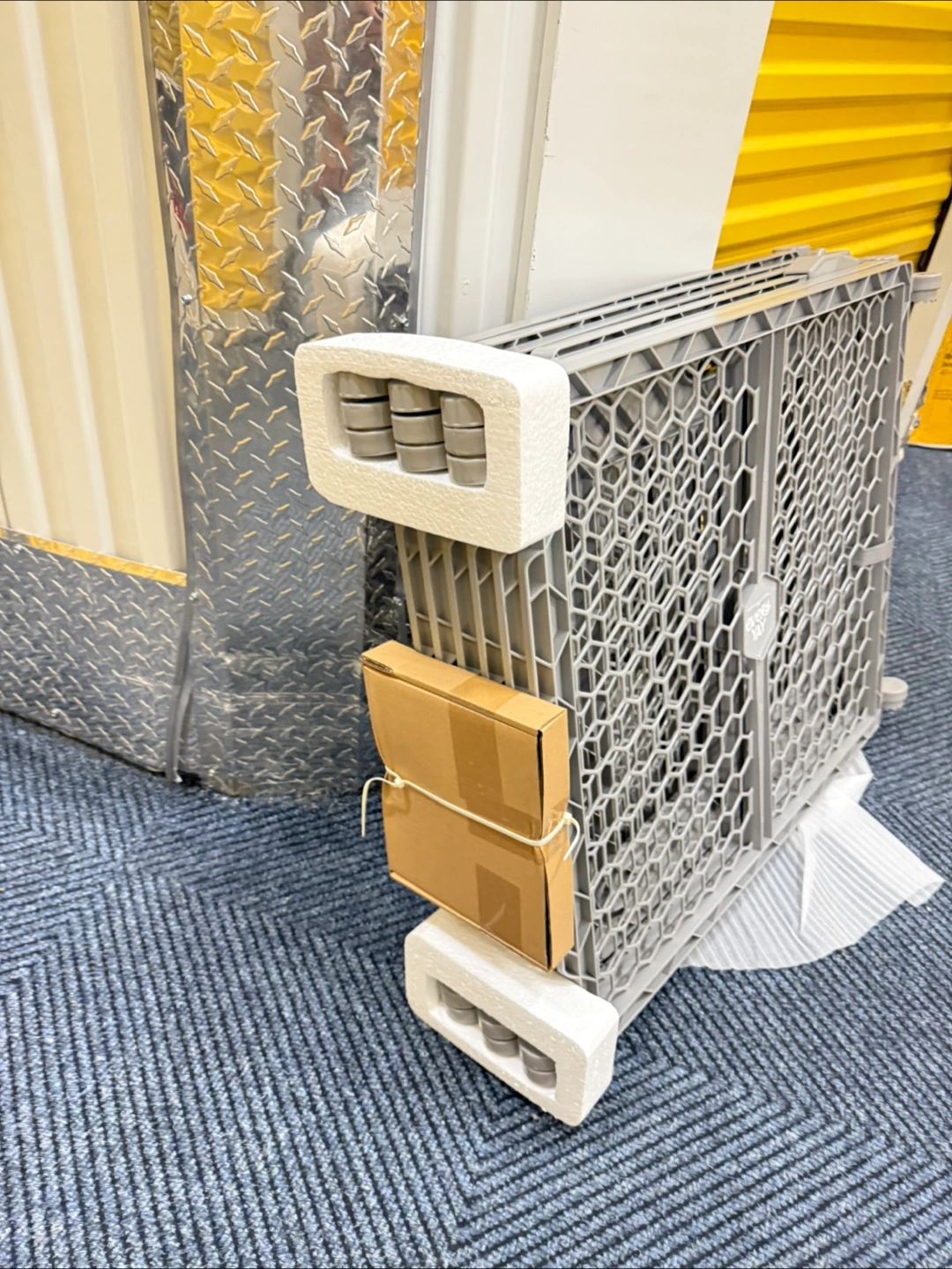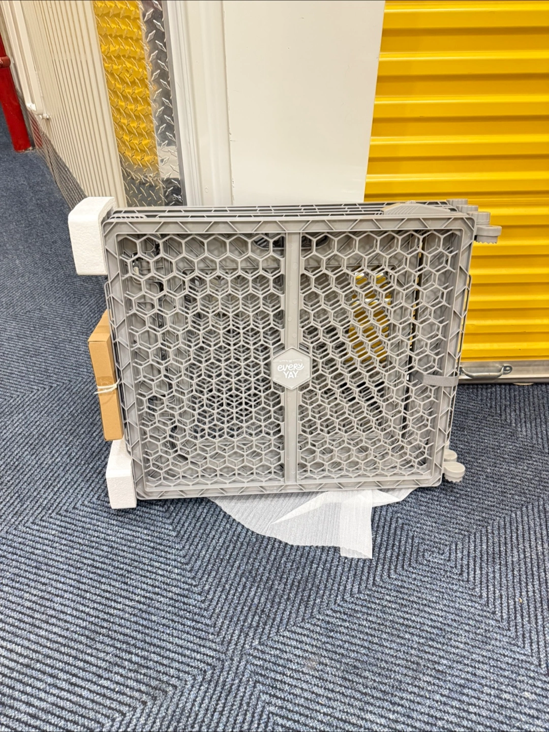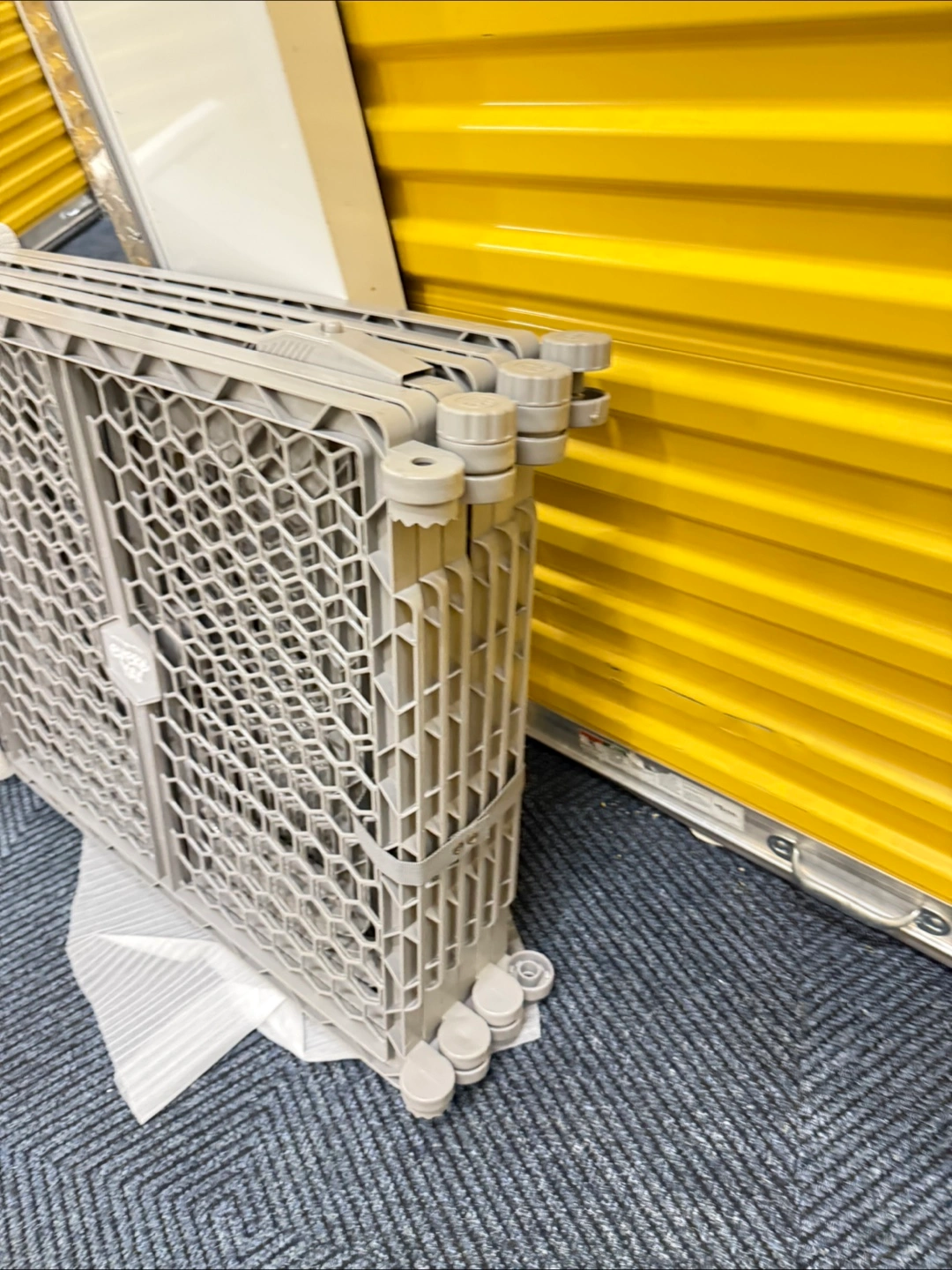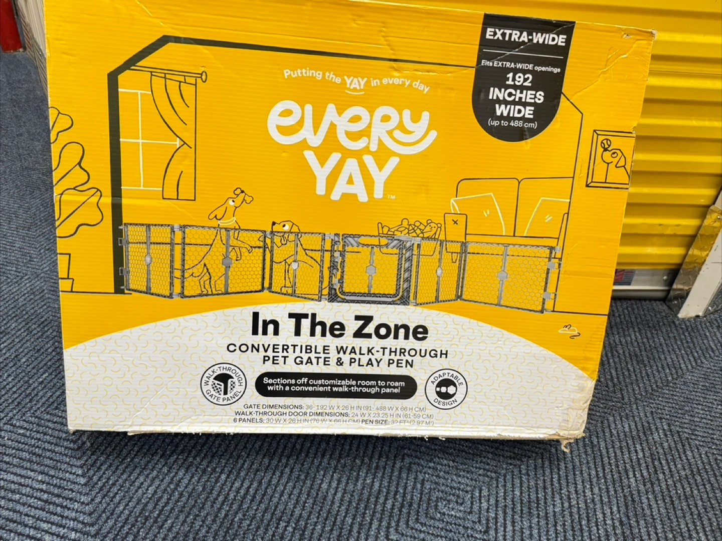 165Convertible pet gate and playpen. Extends to 192 inches wide. Gray color. Eight panels. Easy to assemble.