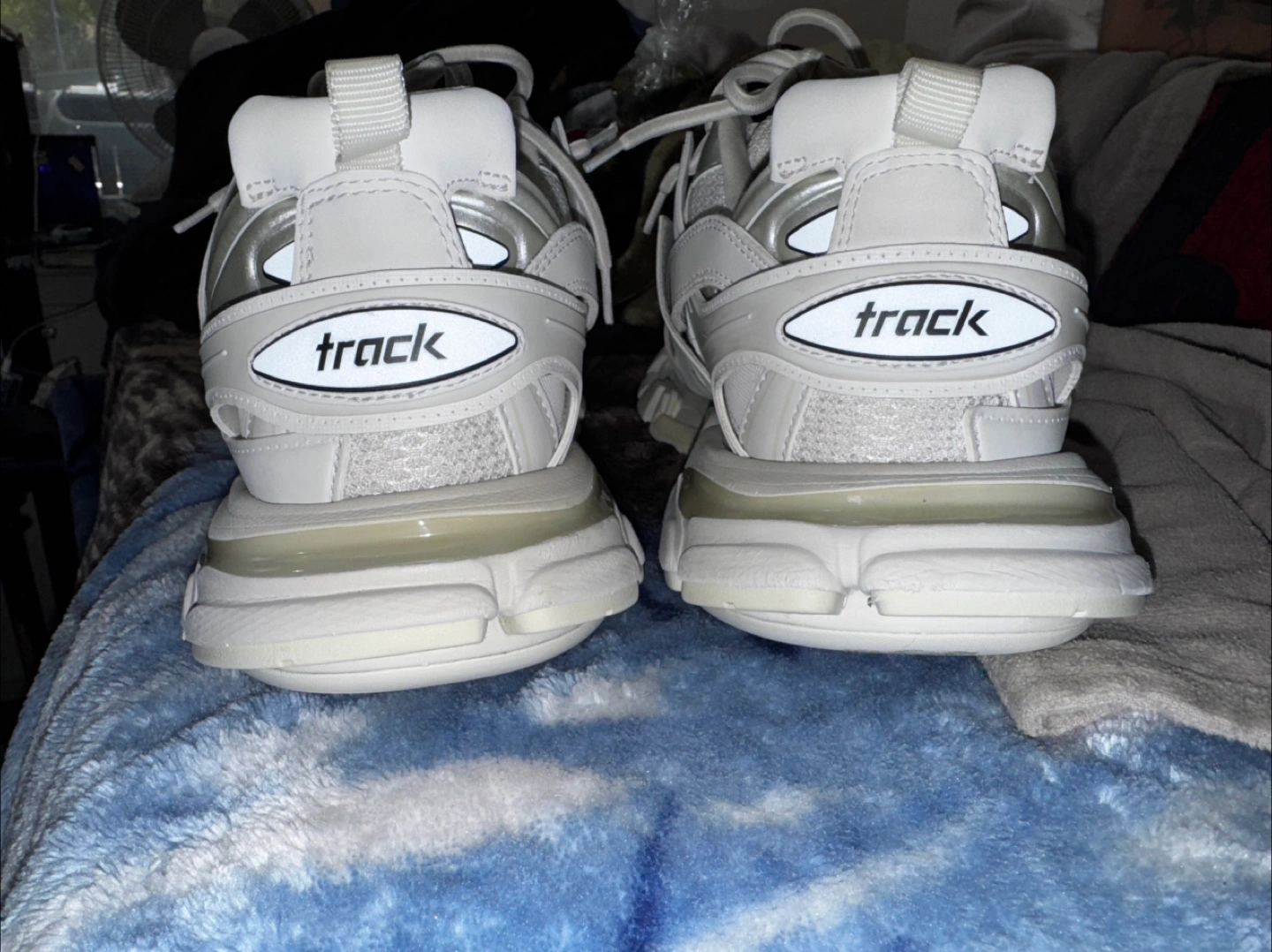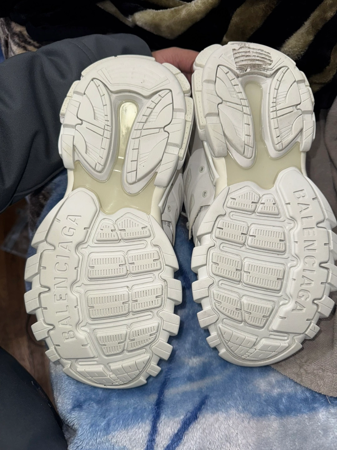 Balenciaga Track Sneakers. Off-white color. Lace-up closure. Unique design details. Textured soles. Excellent condition.
