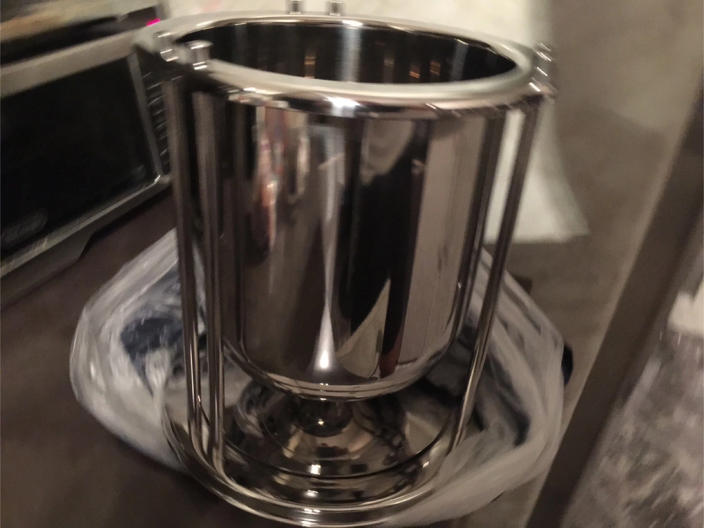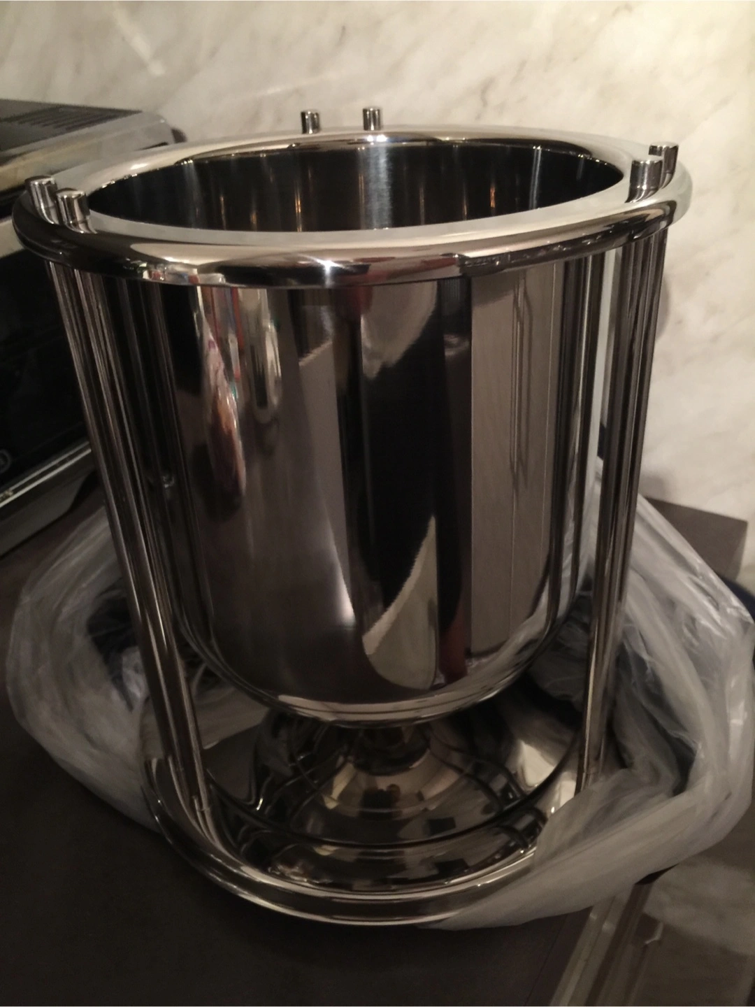 Sleek stainless steel ice bucket. Stylish design. Comes in original box and carrying bag. Perfect for entertaining.