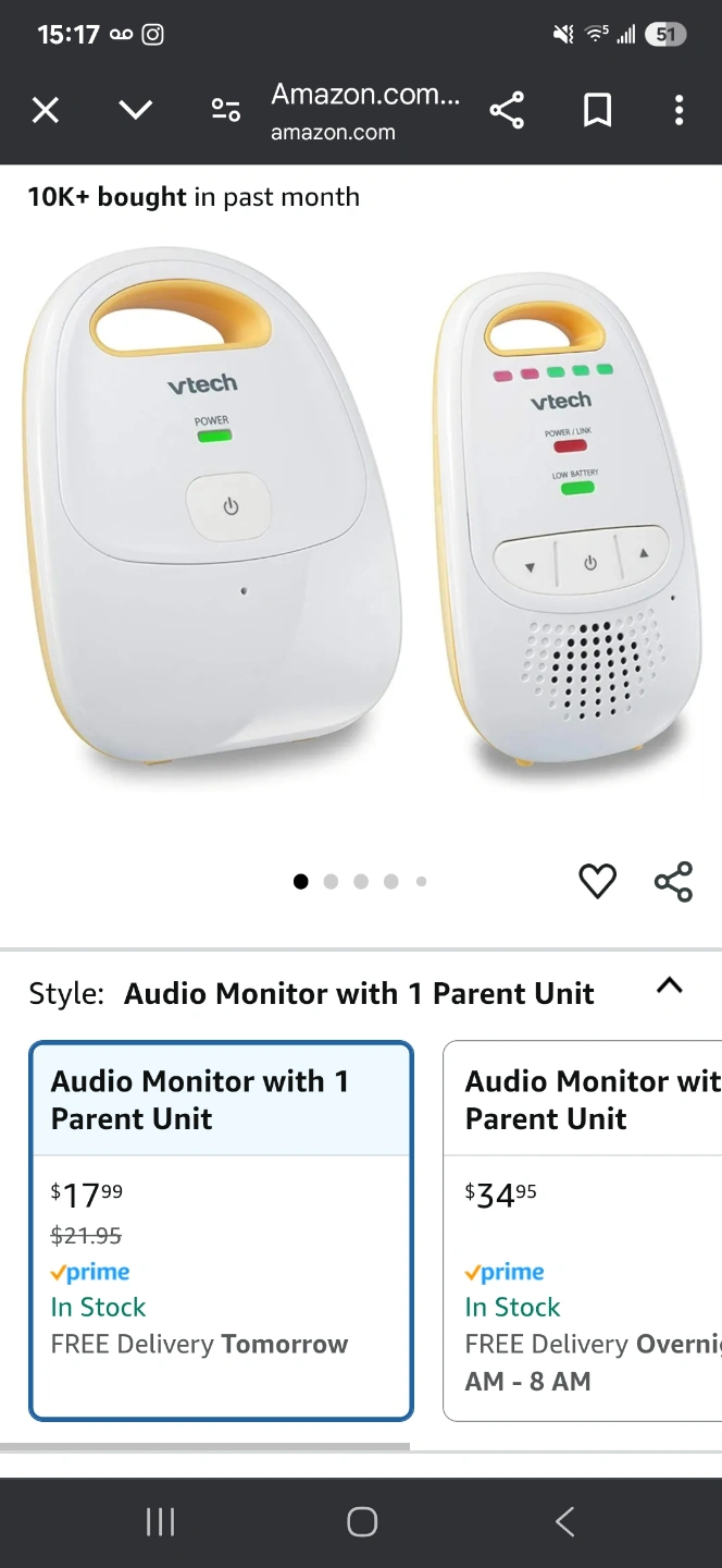 Wireless audio baby monitor. Two parent units included. Great for monitoring baby's sounds.