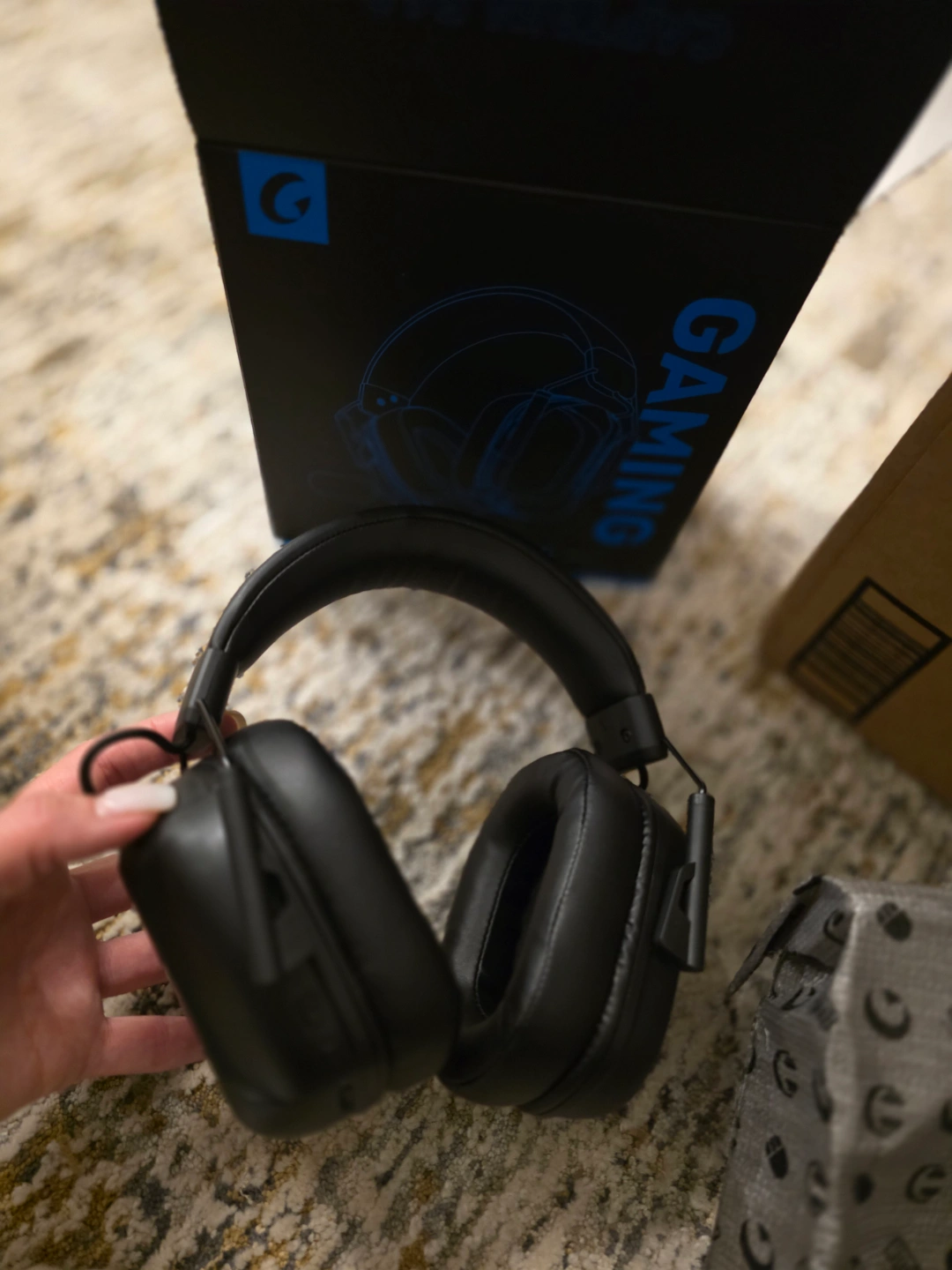 Black gaming headphones. Noise canceling. Detachable microphone. Includes USB adapter and audio cable. Excellent sound quality. Perfect for PC gaming.