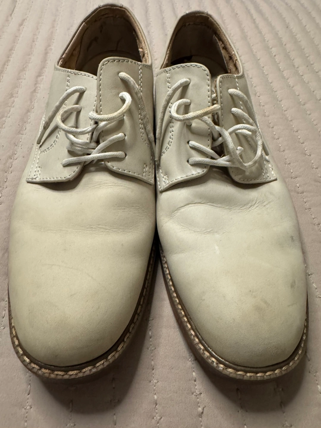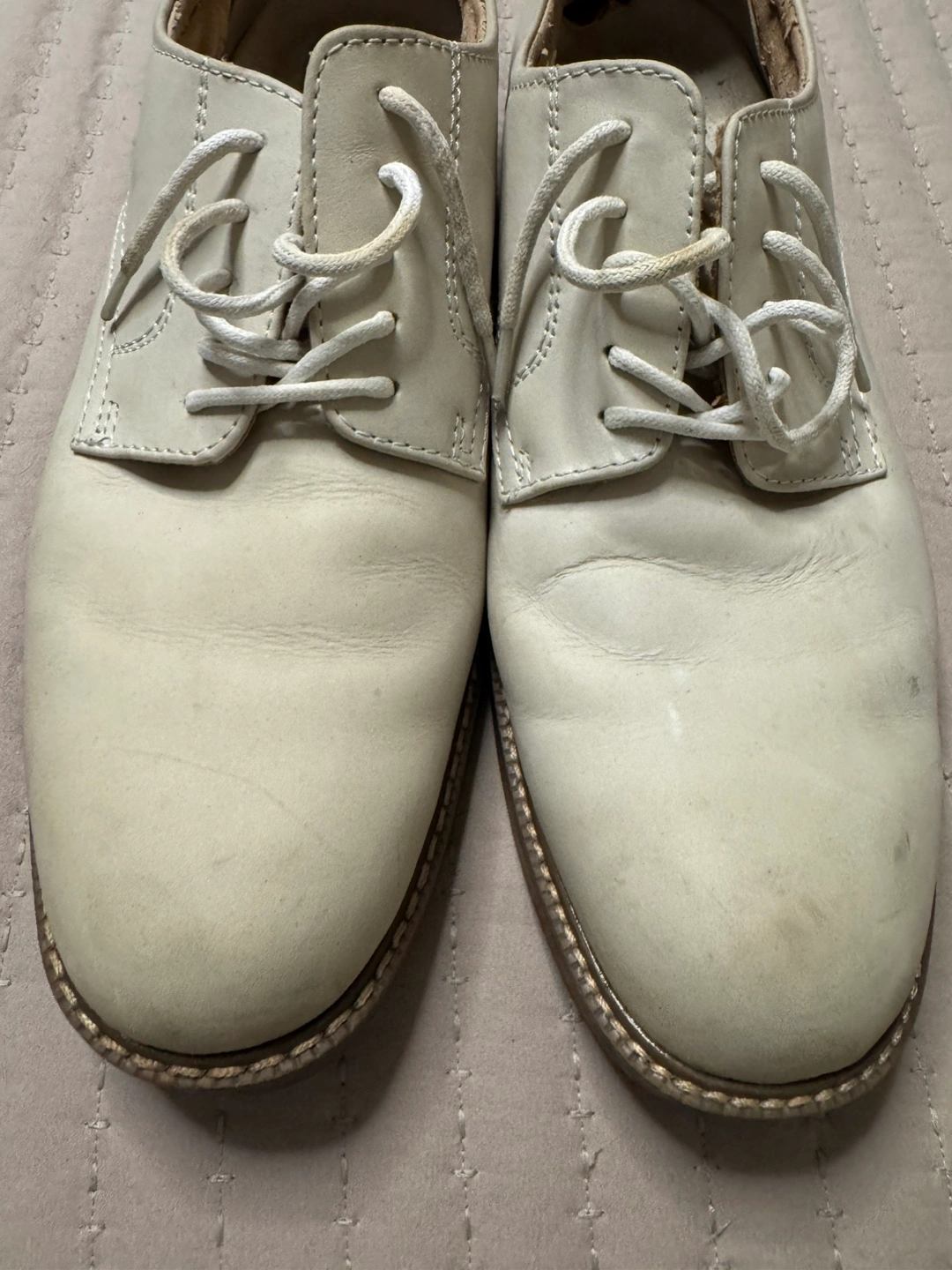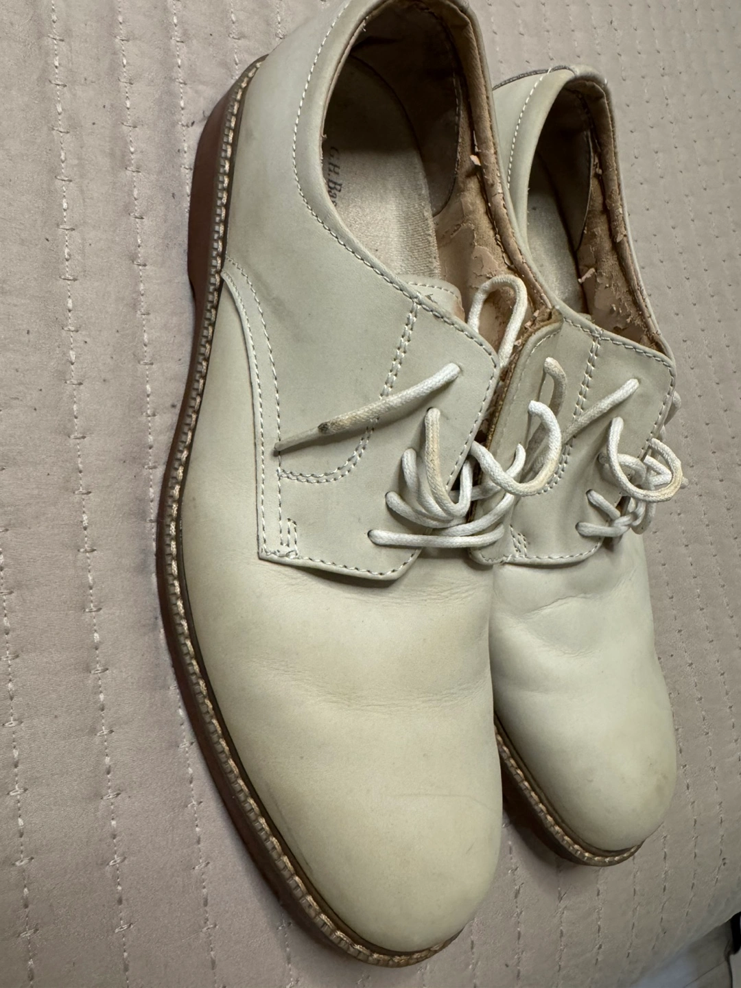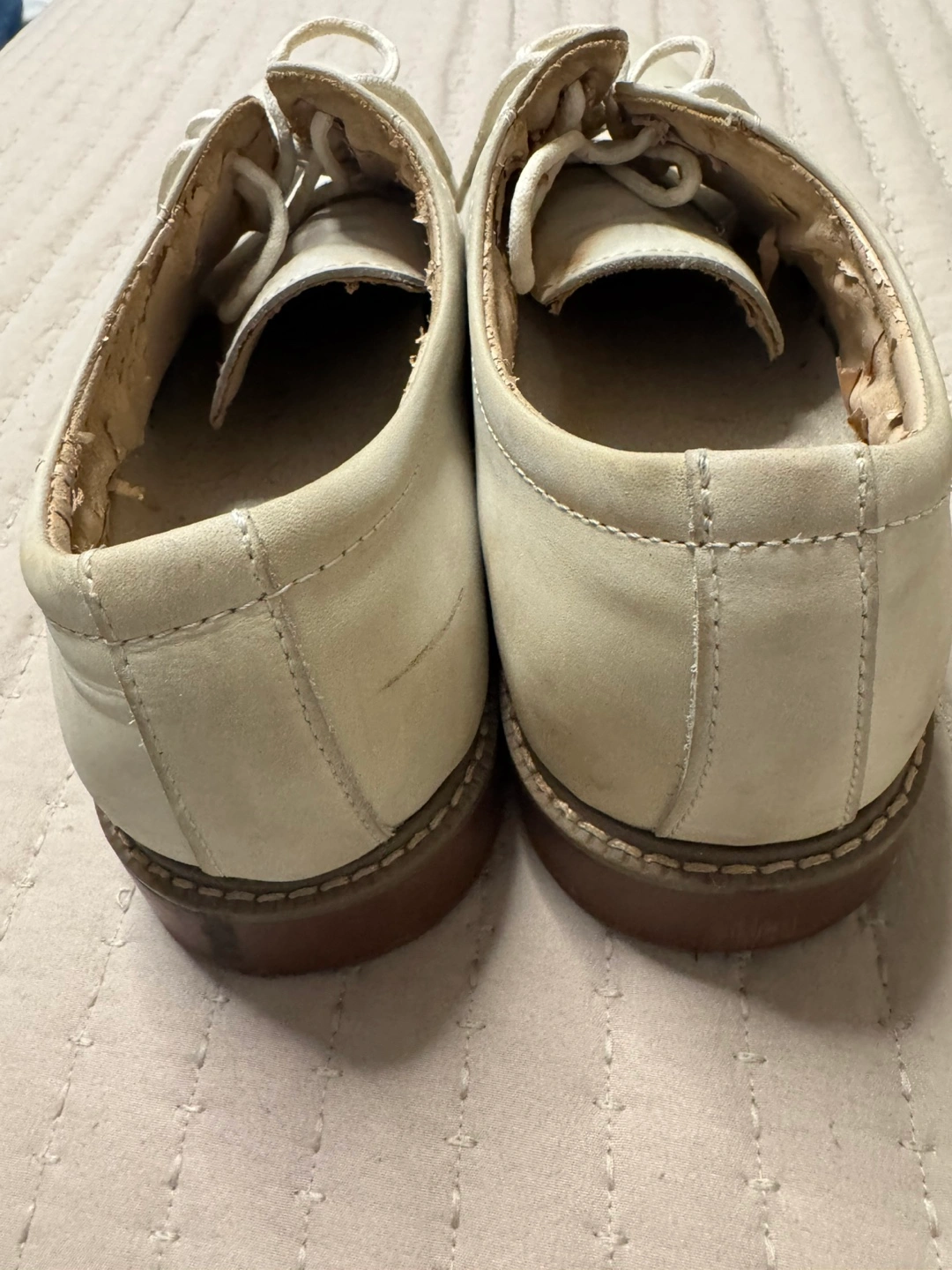 Pre-owned G.H. Bass & Co. men's oxfords. Off-white leather. Lace-up closure. Some wear and tear visible. See photos for details.check pictures inside the shoes is crack