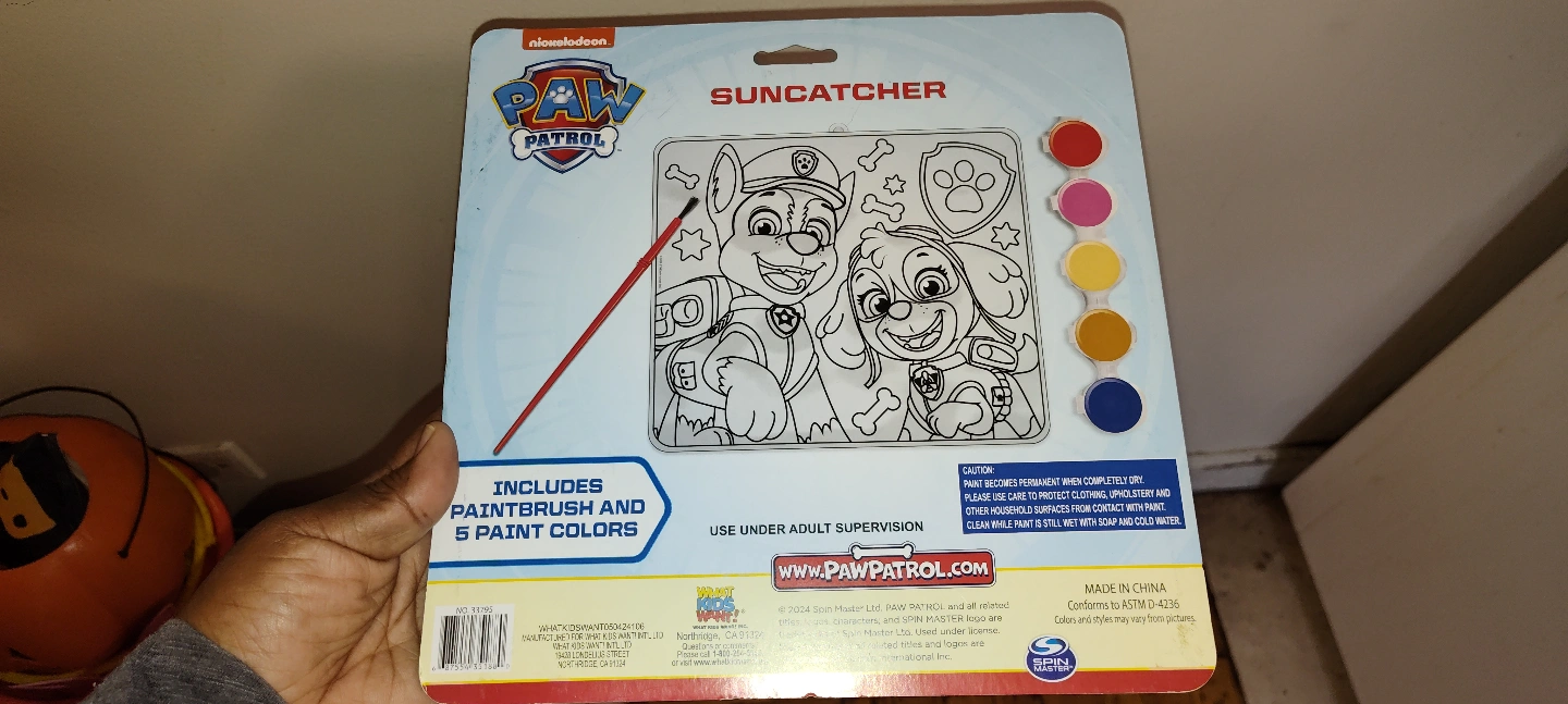 135New Paw Patrol suncatcher craft kit. Includes paintbrush and 5 paint colors. Great for kids.
