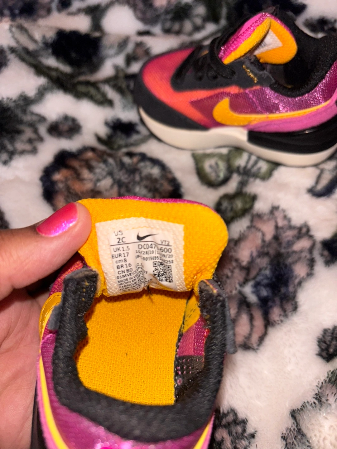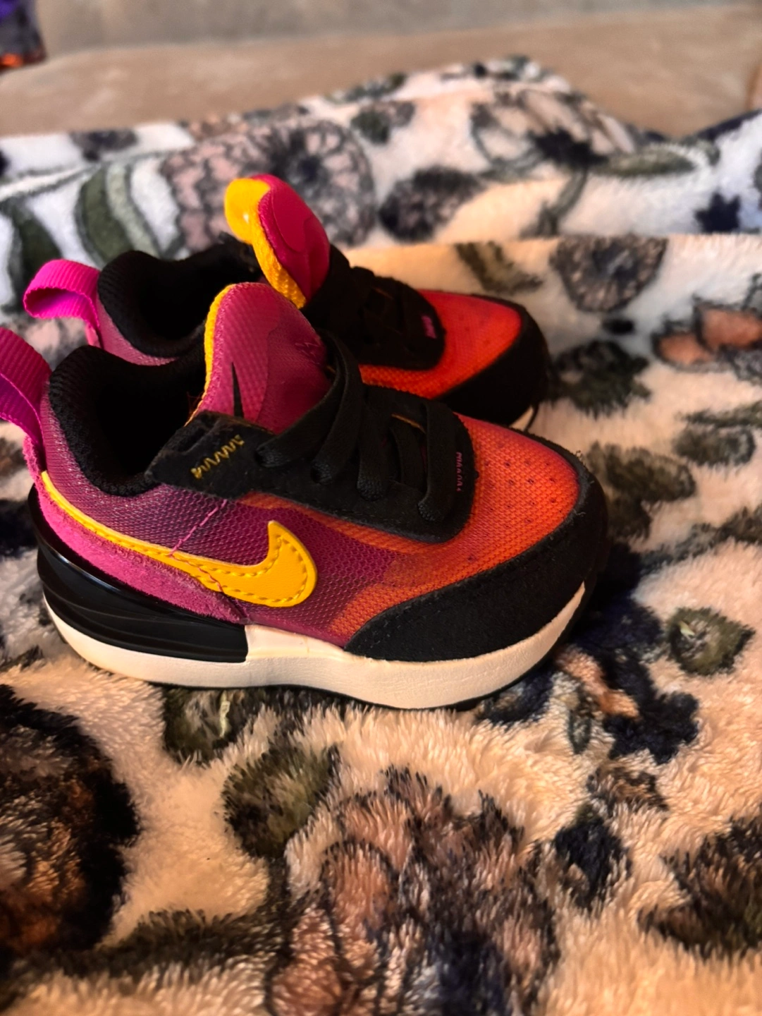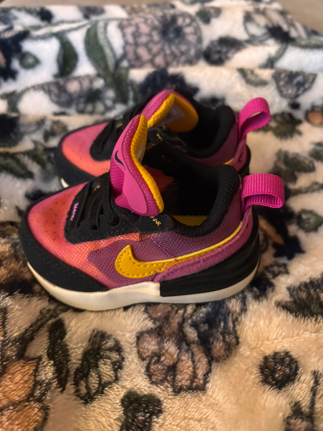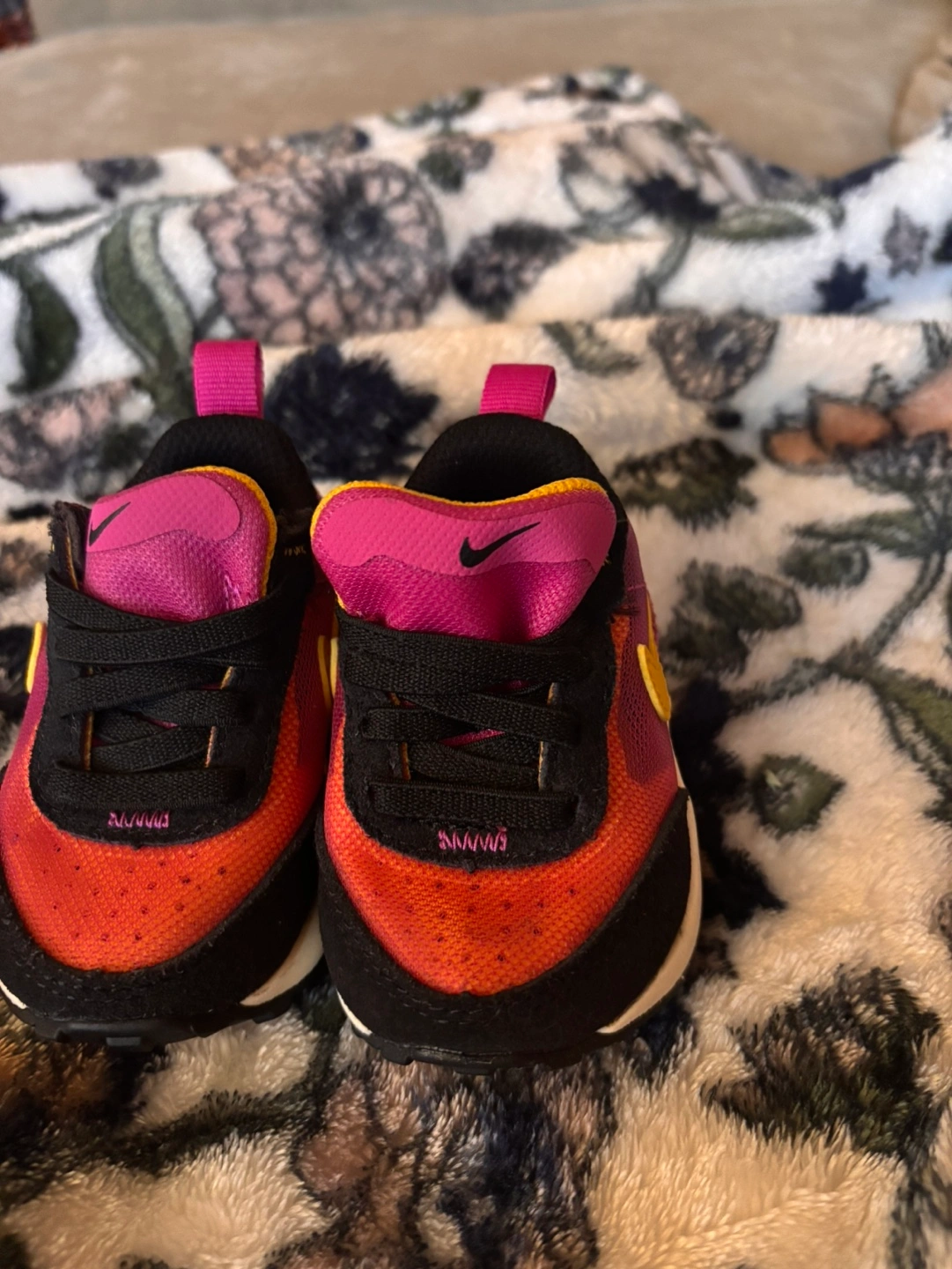 1000+Adorable baby girl Nike Air Max Dawn sneakers. Size 2C. Pink, orange, yellow, and black color scheme. Great condition.