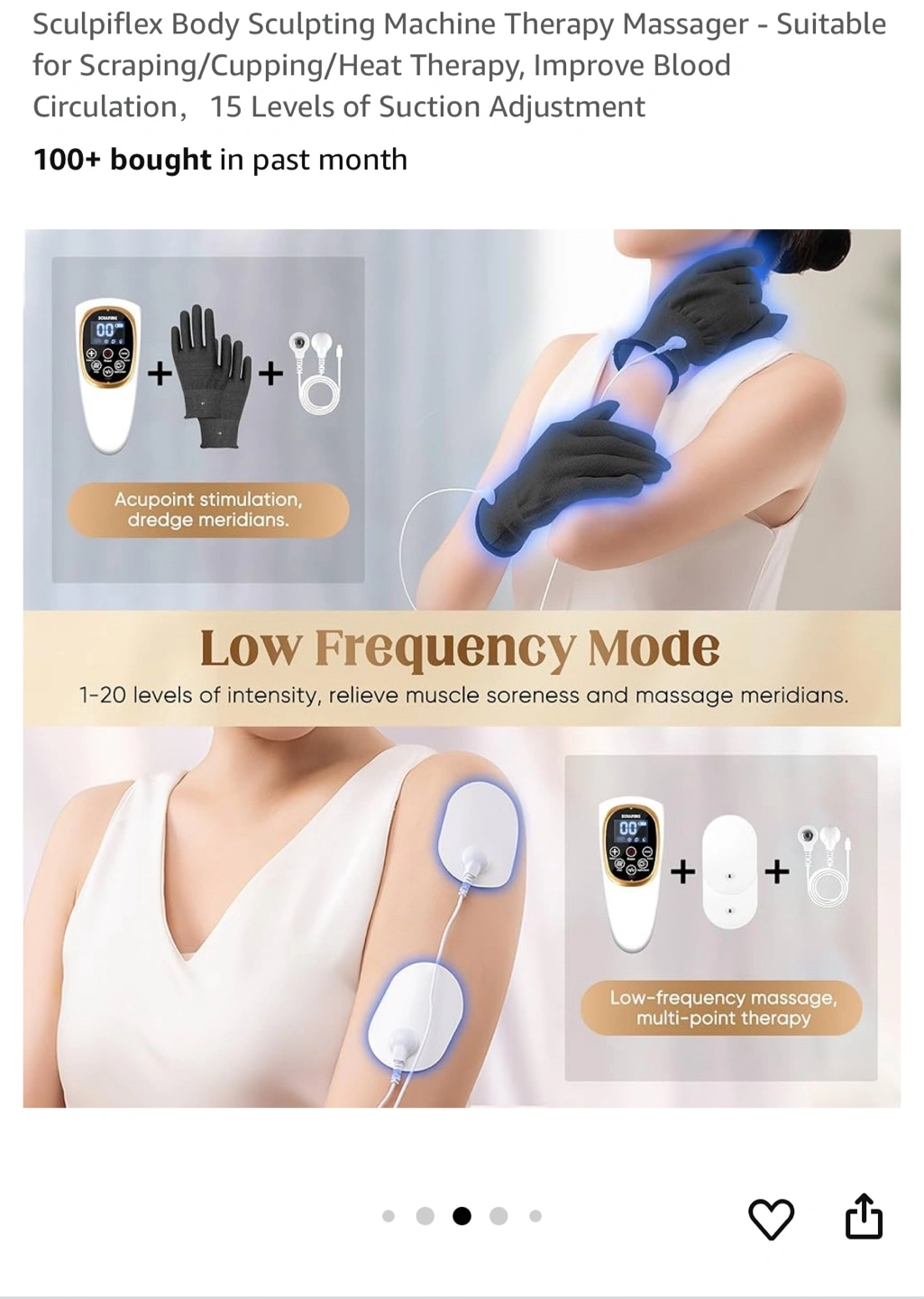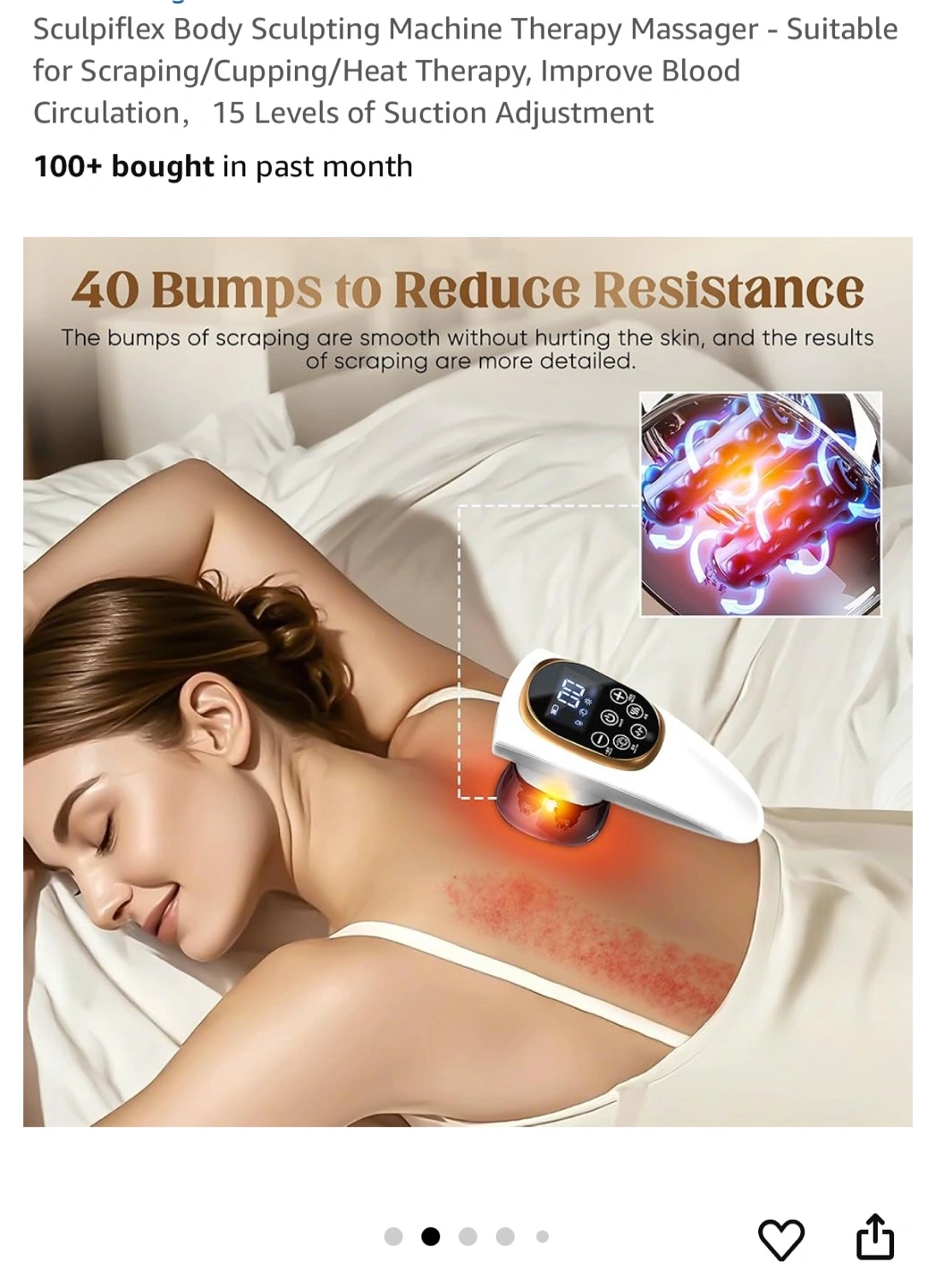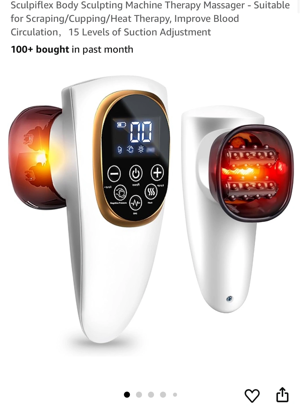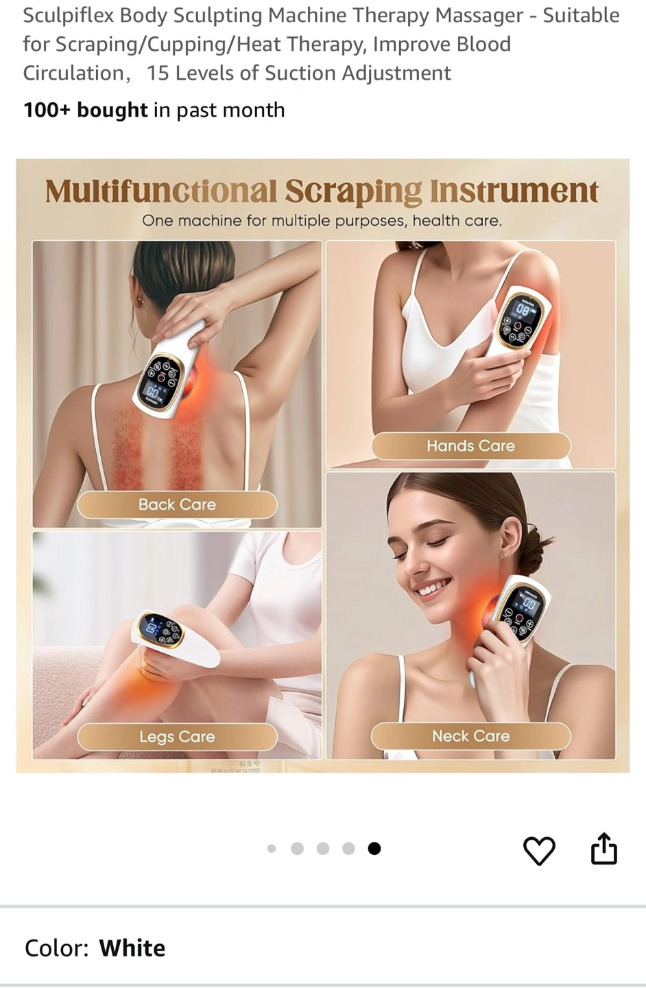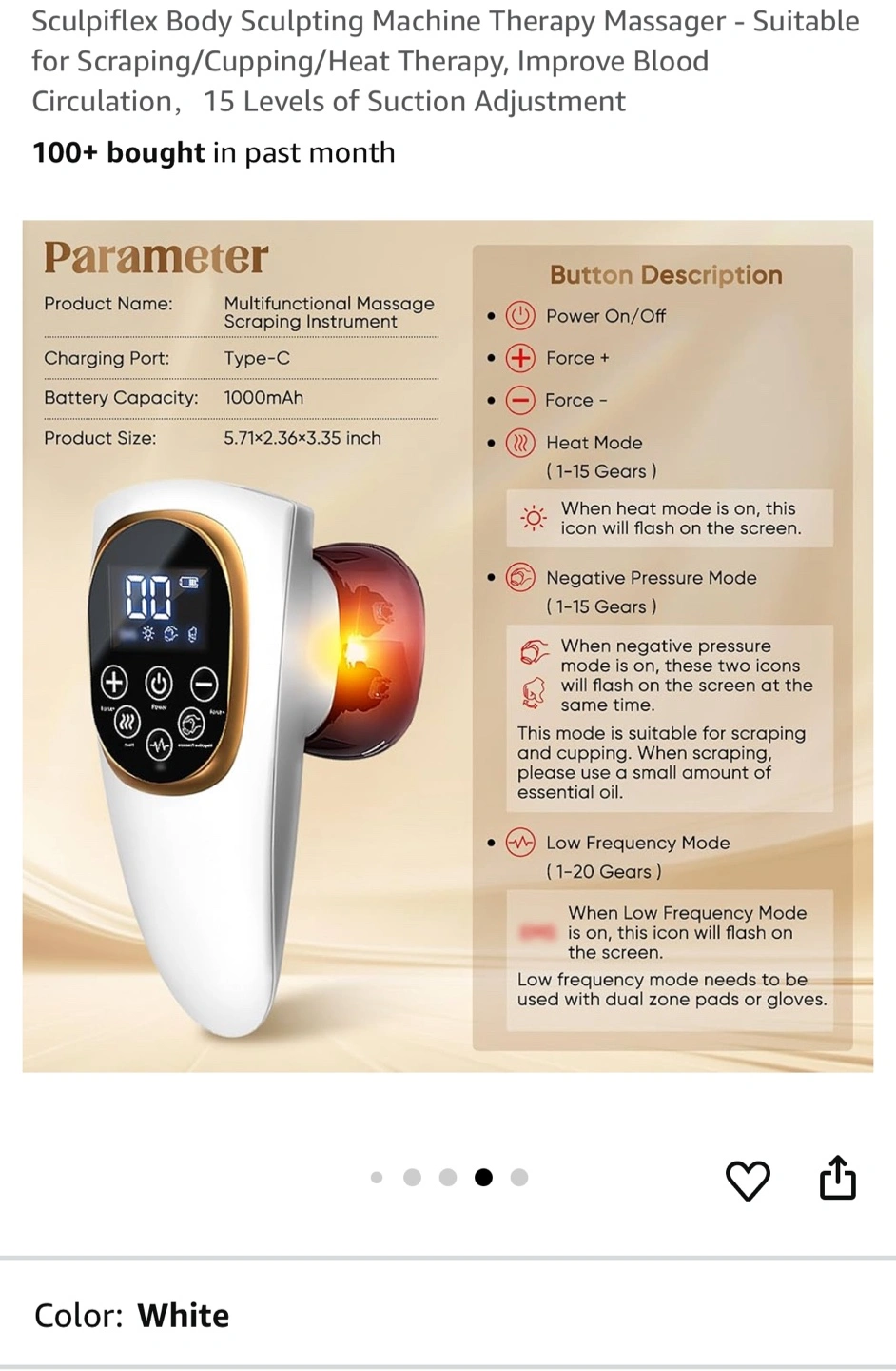 Multifunctional massage scraping instrument. Features EMS, vacuum, and LED therapy. 15 suction adjustment levels. Includes heat and low frequency modes. Suitable for scraping, cupping, and heat therapy. Improves blood circulation.(brand new in box)