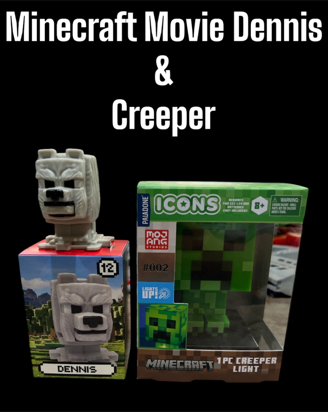 Collectible Minecraft Movie Dennis figure. Gray wolf head design. And light up creeper Comes in original packaging. For anyone that is collecting or gifting Minecraft fandom Please see all of the photos