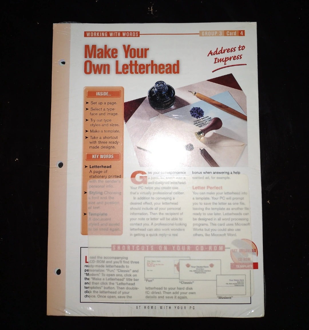 Create personalized letterhead. Includes CD-ROM with templates and instructions. Great for personal or business use. Easy to use.