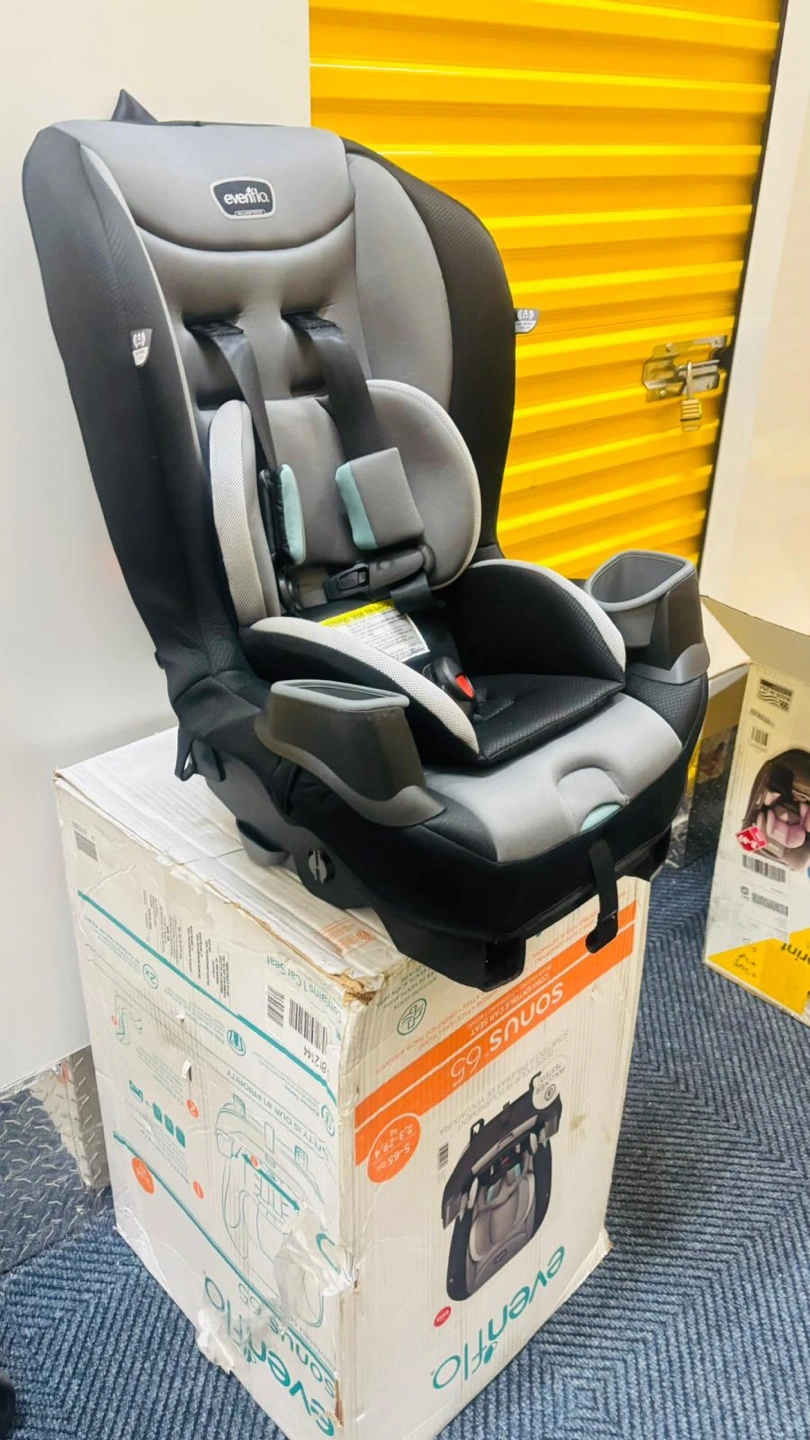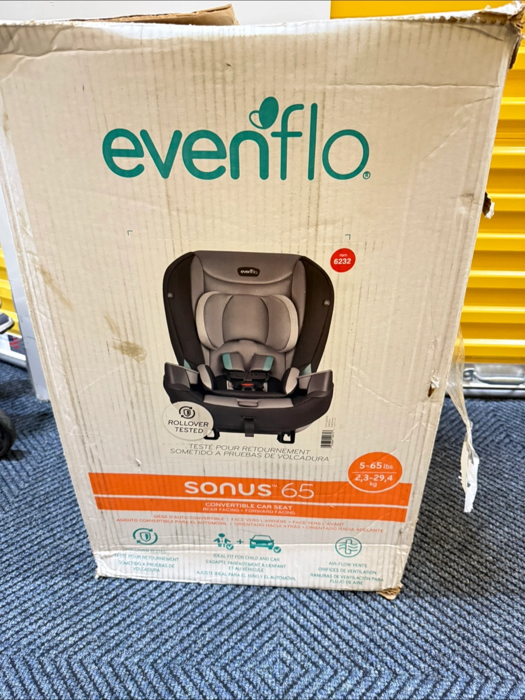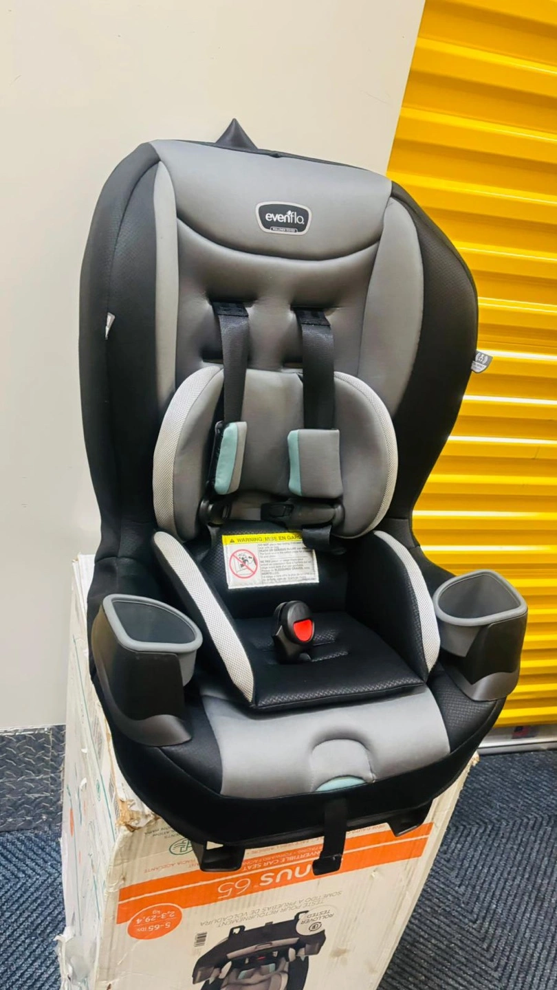 165Convertible car seat, gray and black. 5-65 lbs, 23-29 kg. Side impact protection. Airflow vents. Cup holders.
