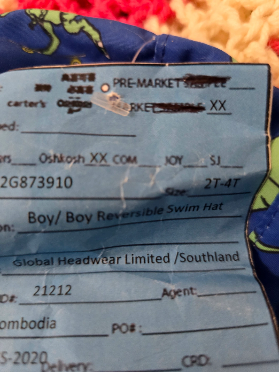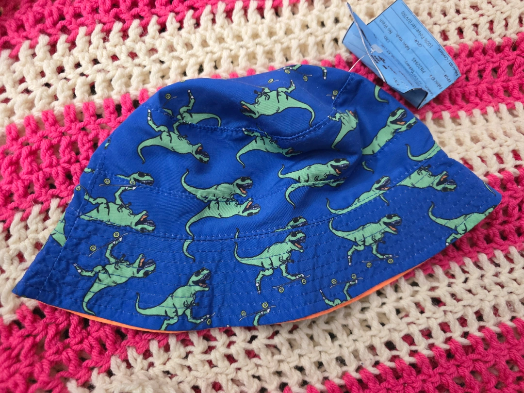 1000+Reversible swim hat. Dinosaur print on one side, solid orange on the other. Size 2T-4T. New with tag.