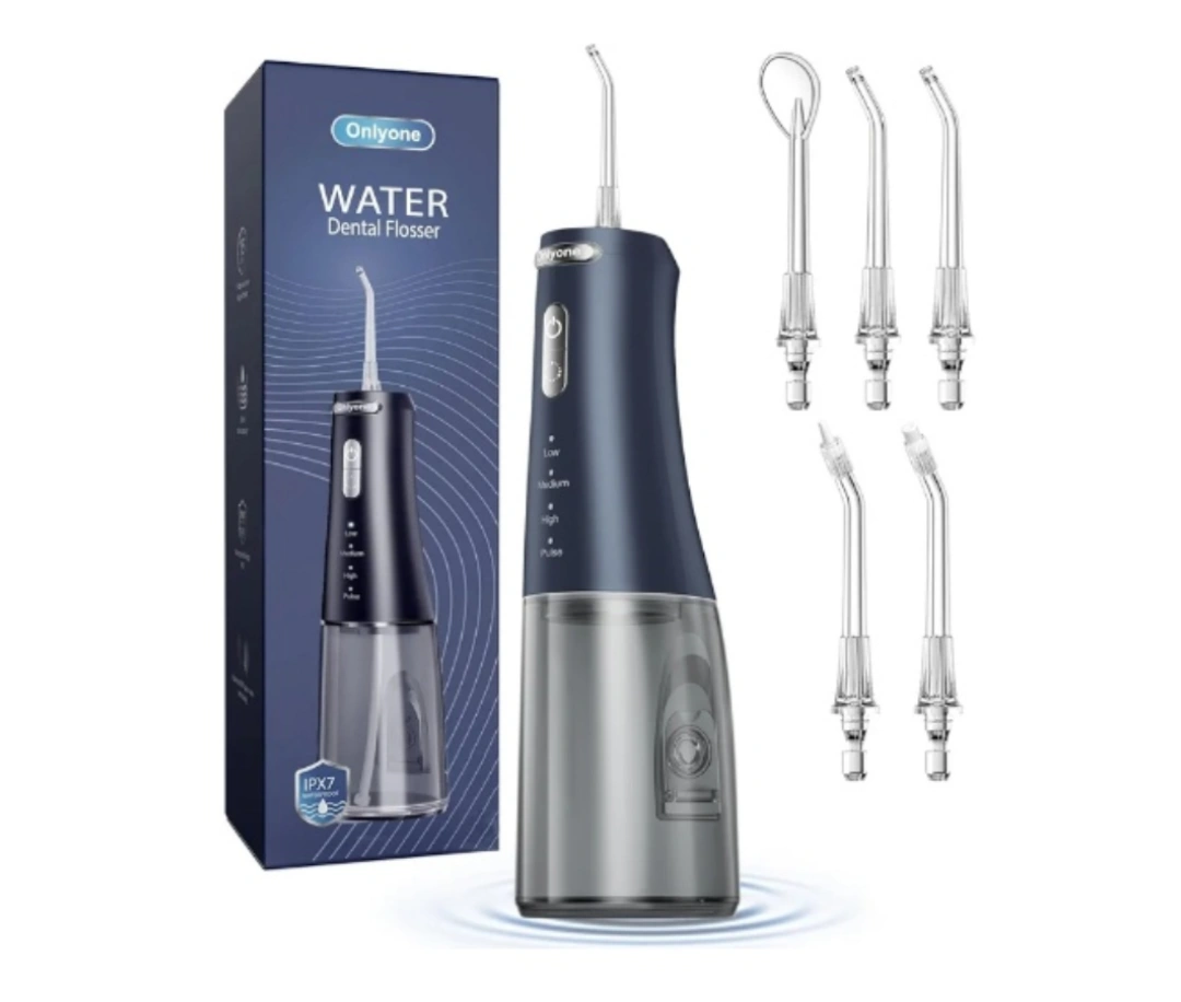 Onlyone Water Dental Flosser, 300ML Portable Oral Irrigator for Teeth, 4 Modes and 5 Jet Tips,Rechargeable Irrigation Cleaner,Electric Flossing Machine Power Flossers & Irrigator Accessories Blue