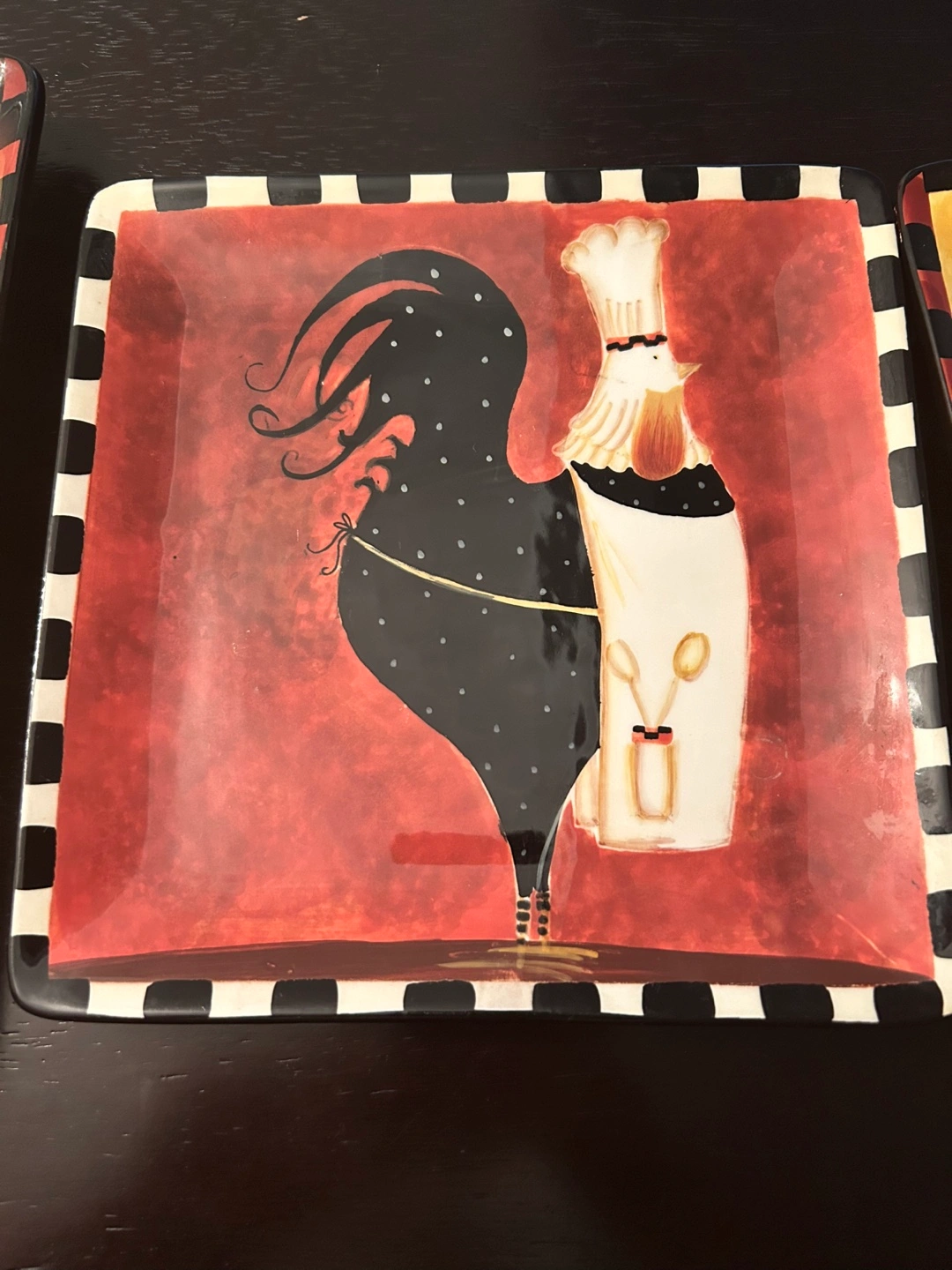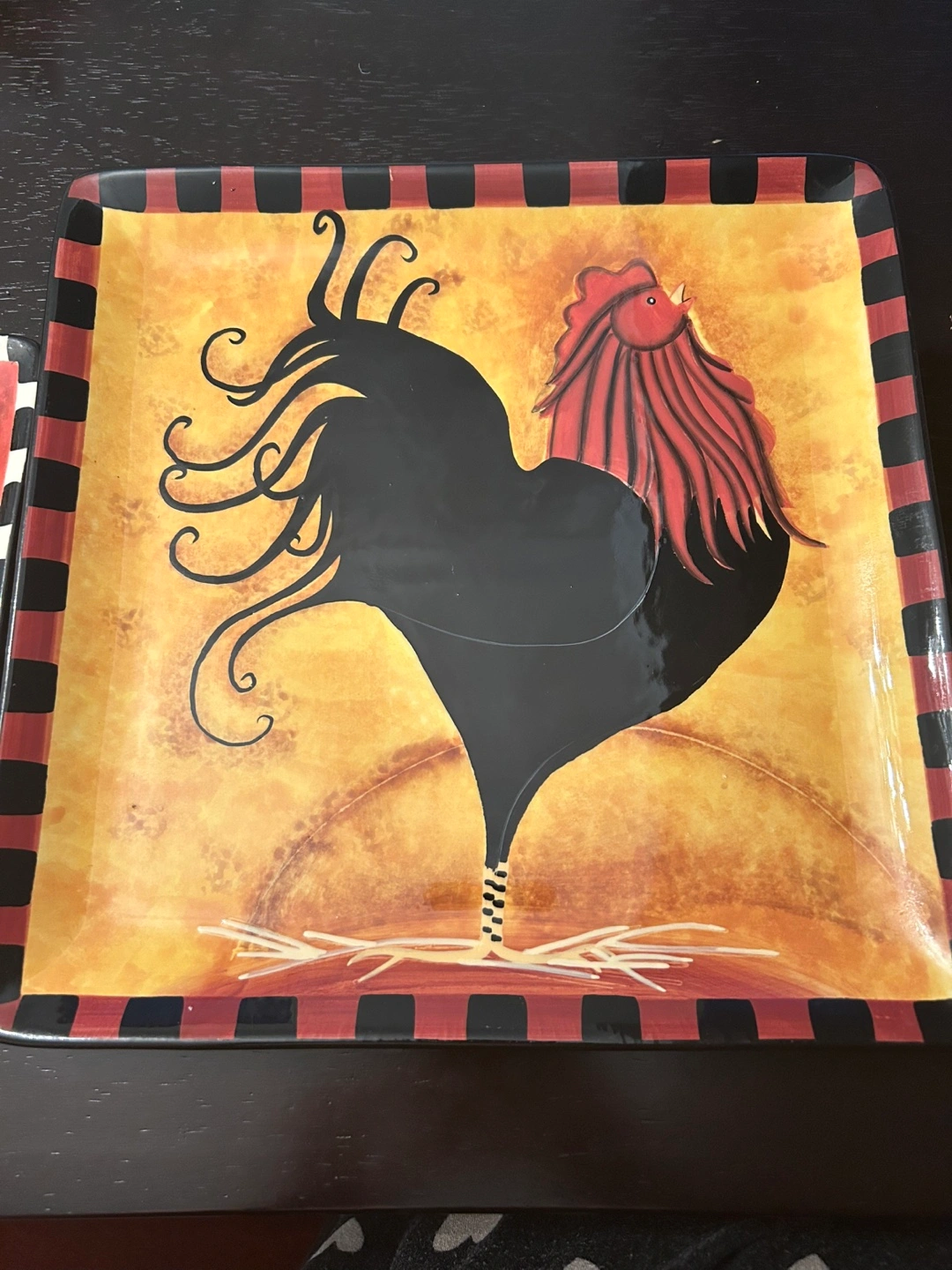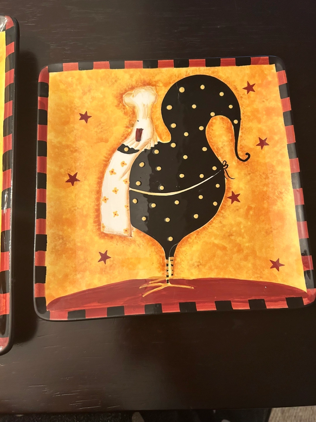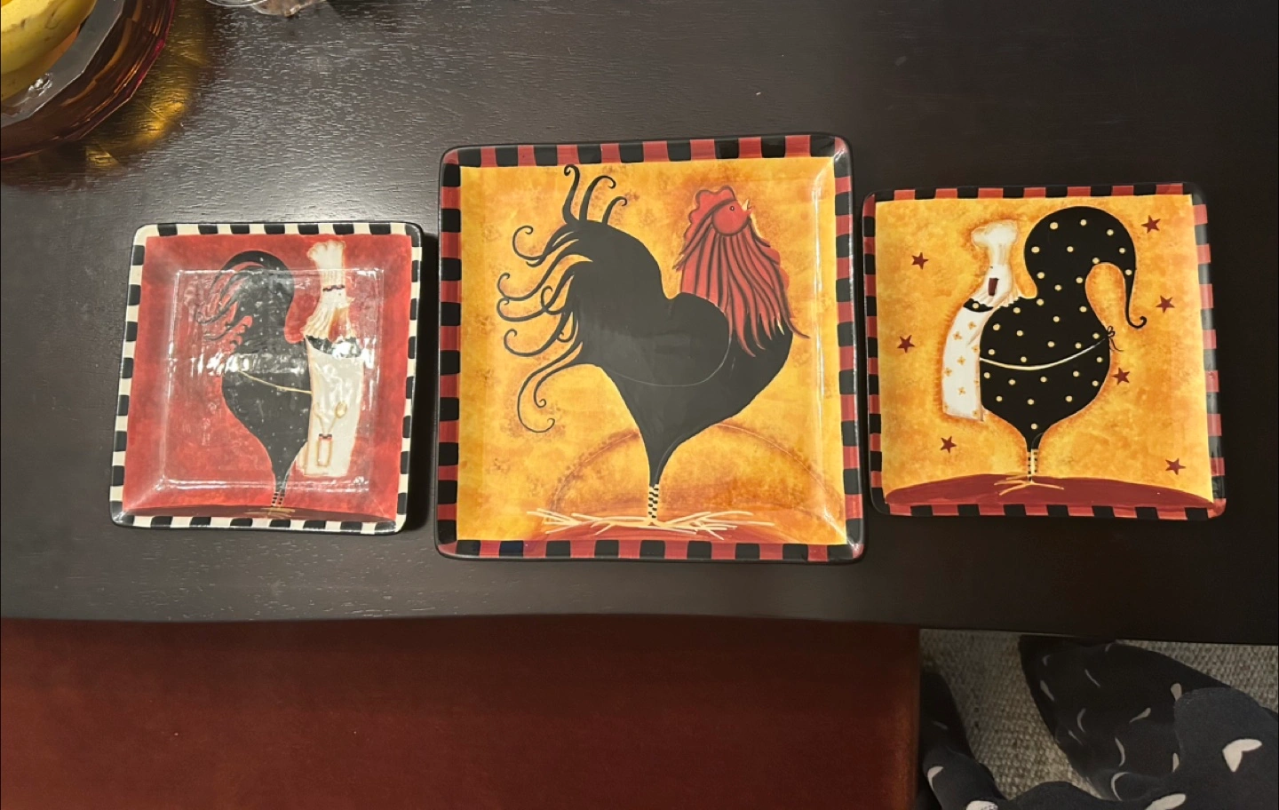 62Set of 3 ceramic decorative plates. Dishwasher & microwave safe in perfect condition. 11 x 11 bigger plate 8.5 x 8.5 smaller plates