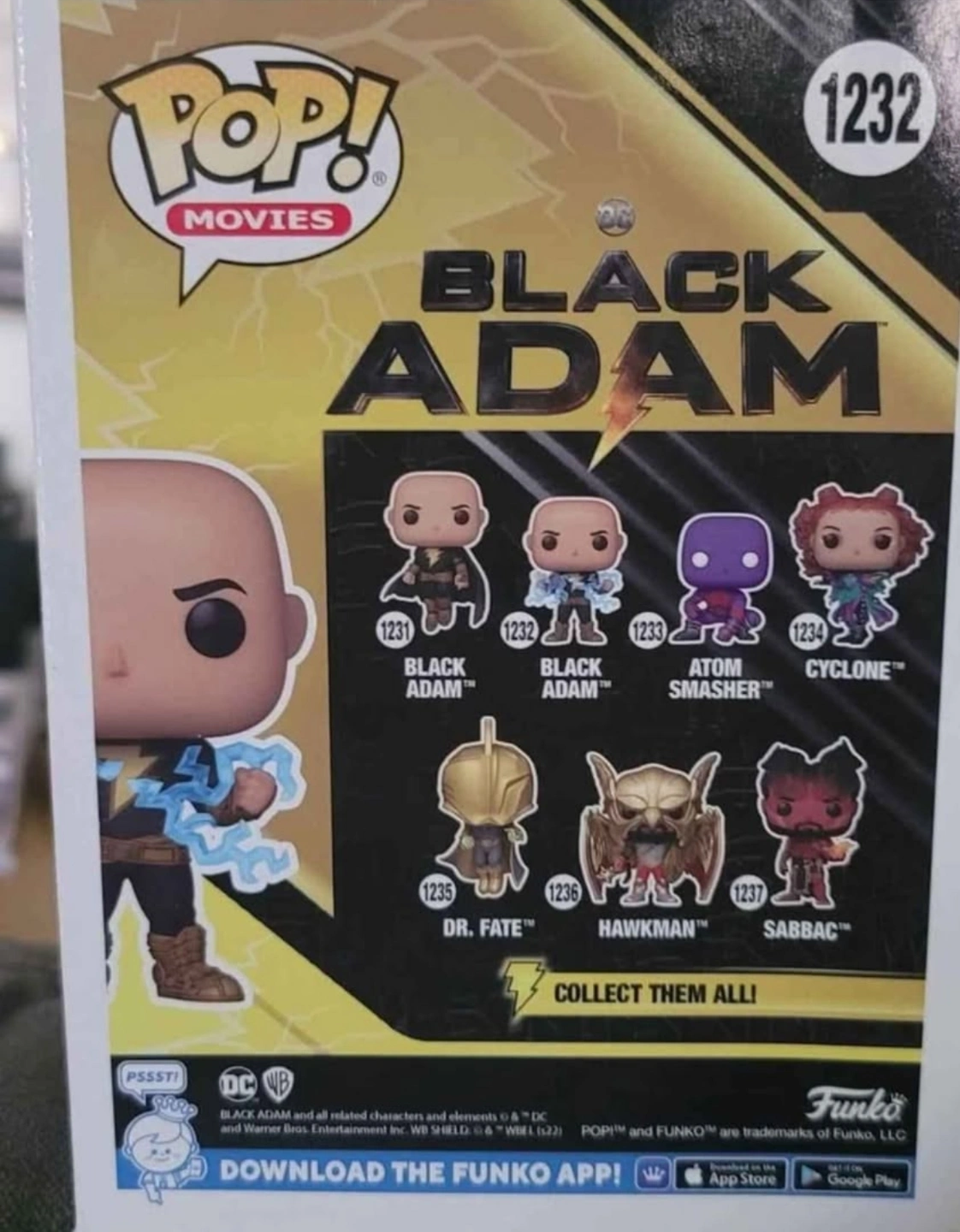 NEW Black Adam Funko Pop! Vinyl Figure. Number 1232 in the Movies series. Collectible figure in box. Great addition to any collection. Pickup in River Grove