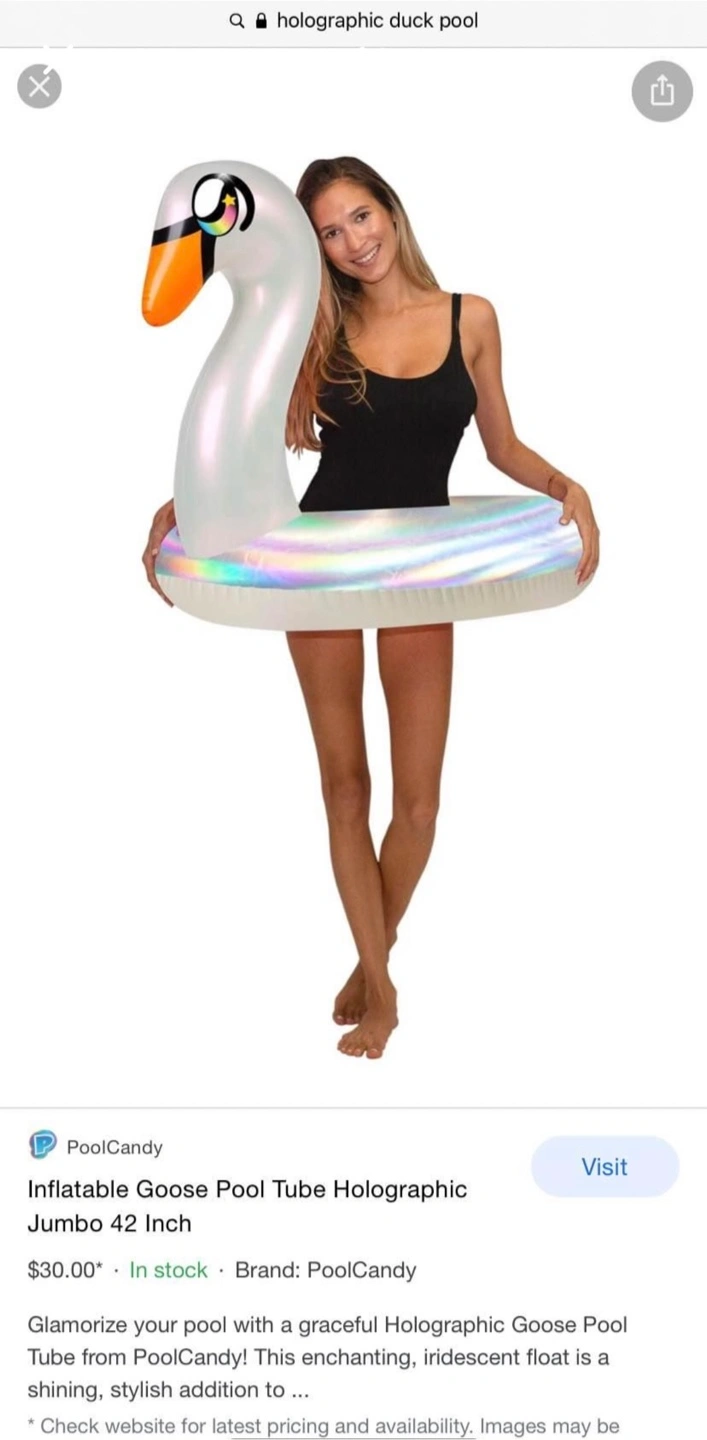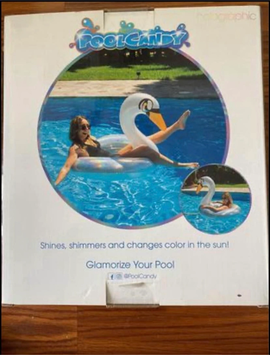 73Inflatable swan pool float. Iridescent, color-changing design. 42 inches. Perfect for summer fun!
