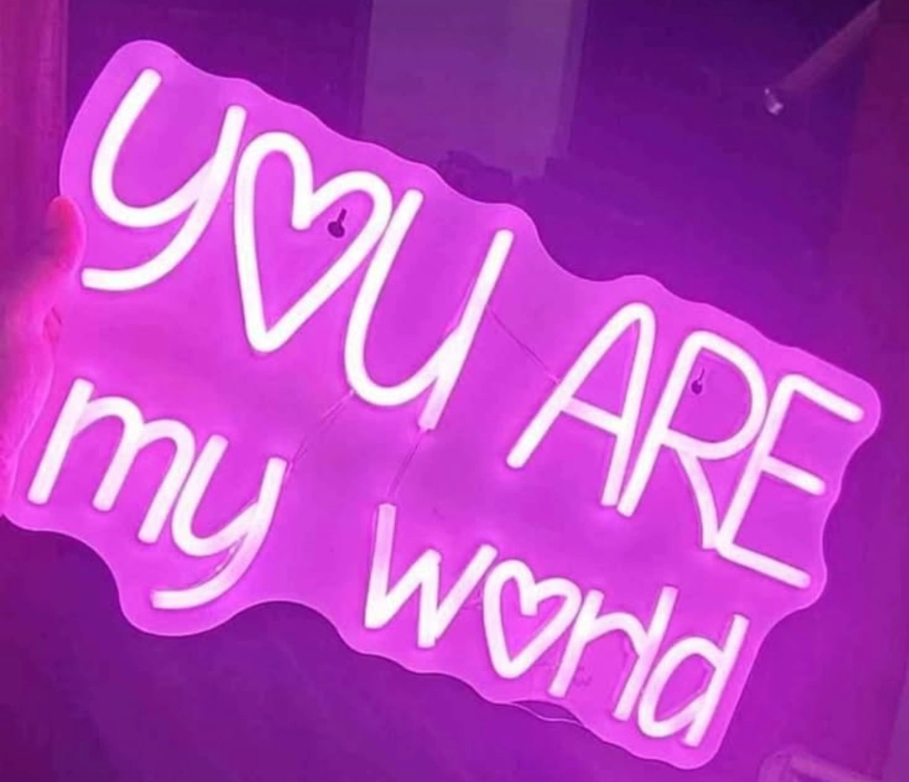 NEW Cute neon sign. Says "You Are My World." Size: 16” X 9” inches Pickup in River Grove