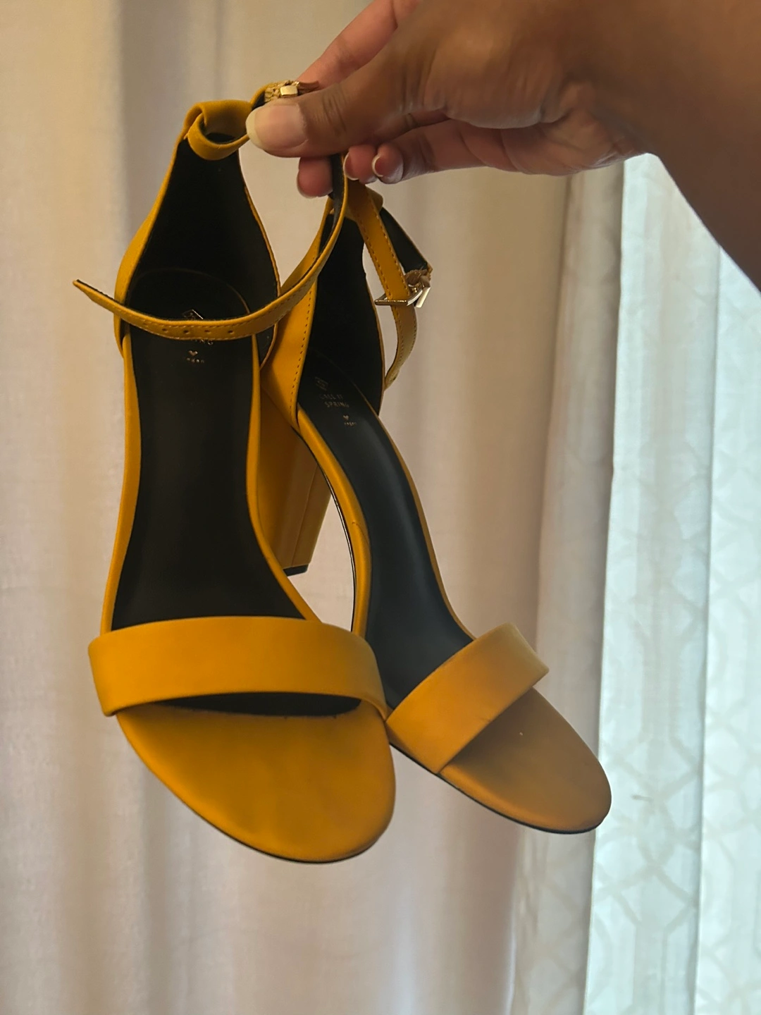 Beautiful mustard yellow heels. Ankle strap closure. Block heel. Great for a night out